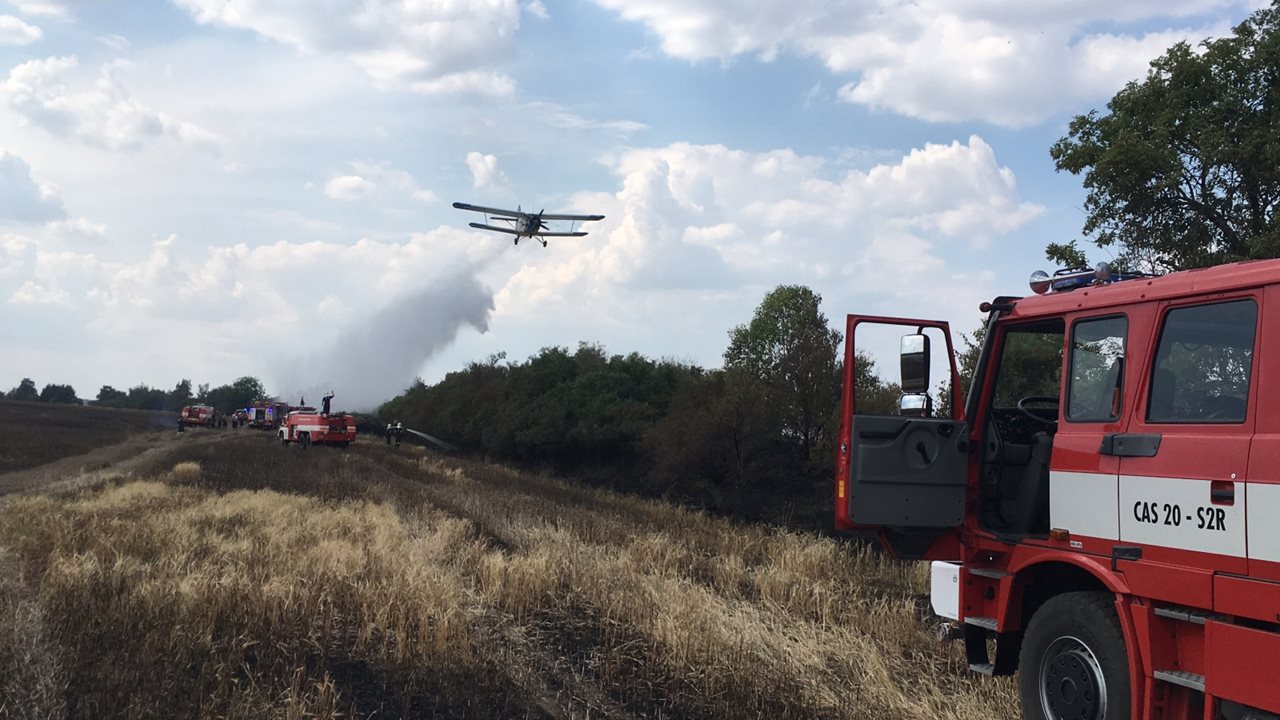 Rozsáhlý požár pole a stromů u Mratína pomáhalo hasit letadlo VIDEO/FOTOGALERIE