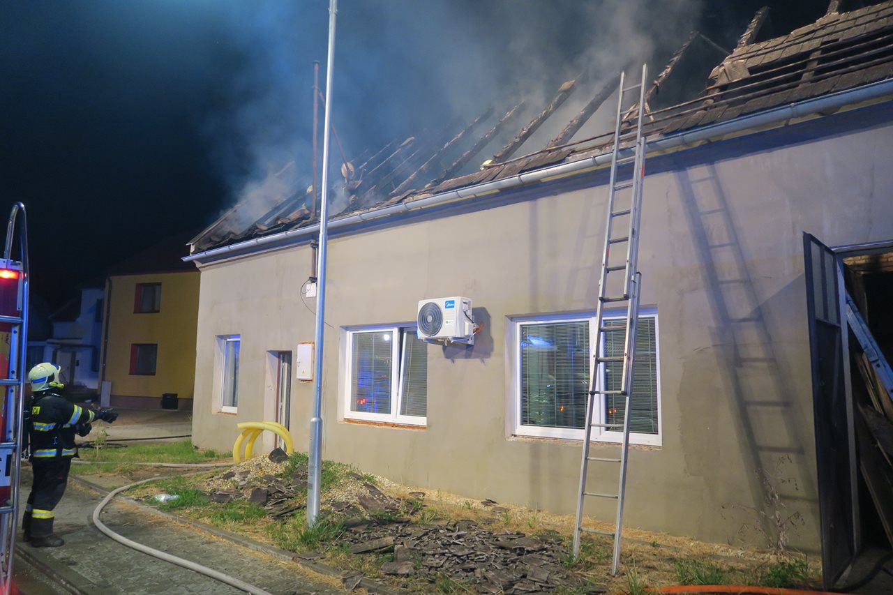 Noční požár střechy rodinného domu hasilo šest jednotek hasičů.