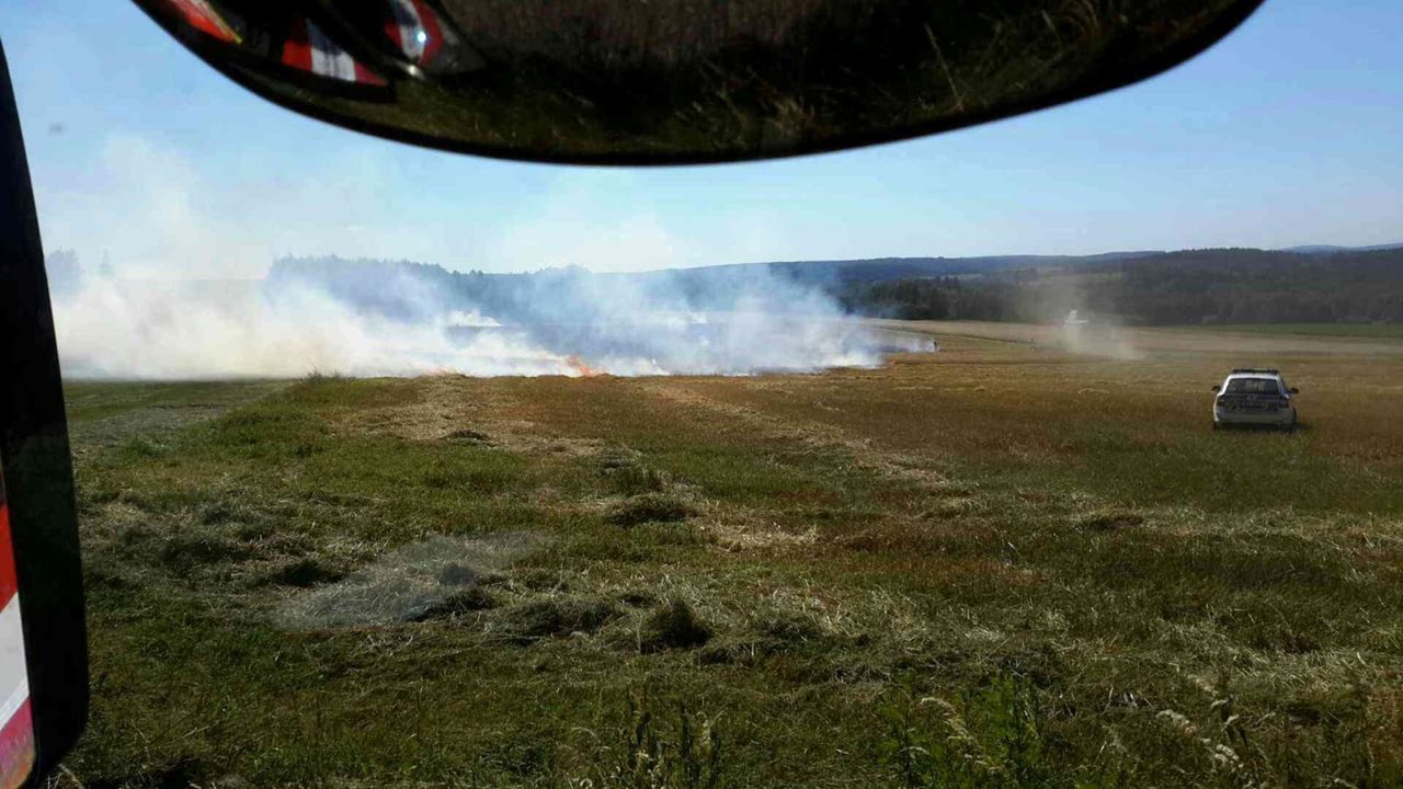 Dva požáry polních strnišť na Královéhradecku během jednoho dne