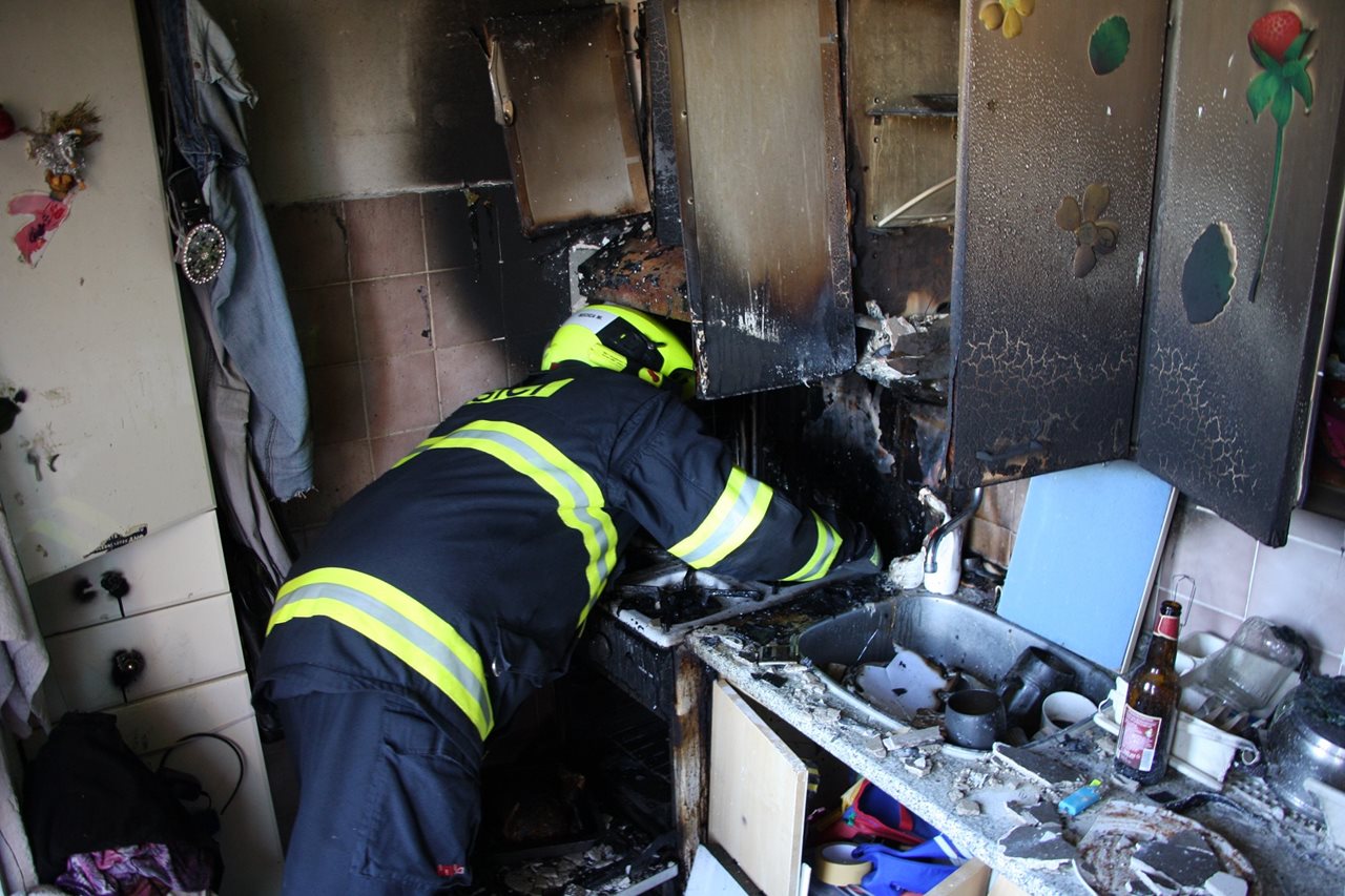U požáru bytového domu ve Starém Městě u Uherského Hradiště zasahovaly v sobotu 30.6. 2018 od 11:46 hodin čtyři jednotky hasičů. Operační důstojník hasičů přijal hlášení o požáru bytu v přízemí bytového domu na ulici Kopánky ve Starém Městě u Uherského Hradiště v 11:37 hodin. K požáru vyslal profesionální hasiče z Uherského Hradiště a dobrovolné hasiče ze Starého Města, Babic a Kunovic. Hasiči vyjeli s pěti automobilovými cisternami a jedním automobilovým žebříkem. Průzkumem byla v hořícím bytě zjištěna jedna osoba, kterou hasiči vyvedli z domu. Dále z domu evakuovali dalších sedm obyvatel, kteří se shromáždili před domem. Tři z těchto obyvatel se nadýchali zplodin hoření, a proto si je k ošetření převzali zdravotníci. Muž, který byl vyveden z hořícího bytu, byl později převezen do nemocnice. Byl vypnut elektrický proud, zastaven hlavní uzávěr plynu a hlavní uzávěr vody. K uhašení požáru v kuchyni byl nasazen jeden vysokotlaký proud vody. Na místo požáru se dostavila Policie České republiky a vyšetřovatel hasičů. Oznamovatelka vyšetřovateli sdělila, že uslyšela ze schodiště křik. Otevřela dveře a uviděla jednoho z nájemníků strhávat ze zdi hasicí přístroj, s nímž začal stříkat do hořícího bytu. Do schodiště se valil černý kouř. Z tohoto důvodu ihned oznámila požár hasičům. Příčina vzniku požáru zůstává v šetření Policie České republiky. Požárem byly poškozeny ohraničující konstrukce instalační šachty, potrubí vody a vzduchotechniky, přívod plynu k plynovému sporáku, elektroinstalace, vnitřní vybavení kuchyně. Prostory domu byly zakouřeny a voda z poškozeného vnitřního rozvodu vody promáčela stropní konstrukci a vnikla do sklepa. Prozatím nebyla vyčíslena výše škody vzniklá požárem. Zdroj: nprap. Roman Žemlička – HZS Zlínského kraje Foto: HZS Zlínského kraje FOTOGALERIE