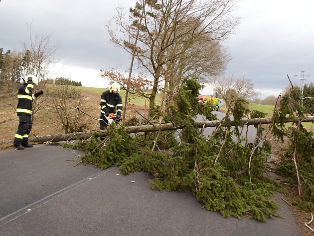 Moravskoslezské hasiče zaměstnaly večerní bouřky, hlavně stromy