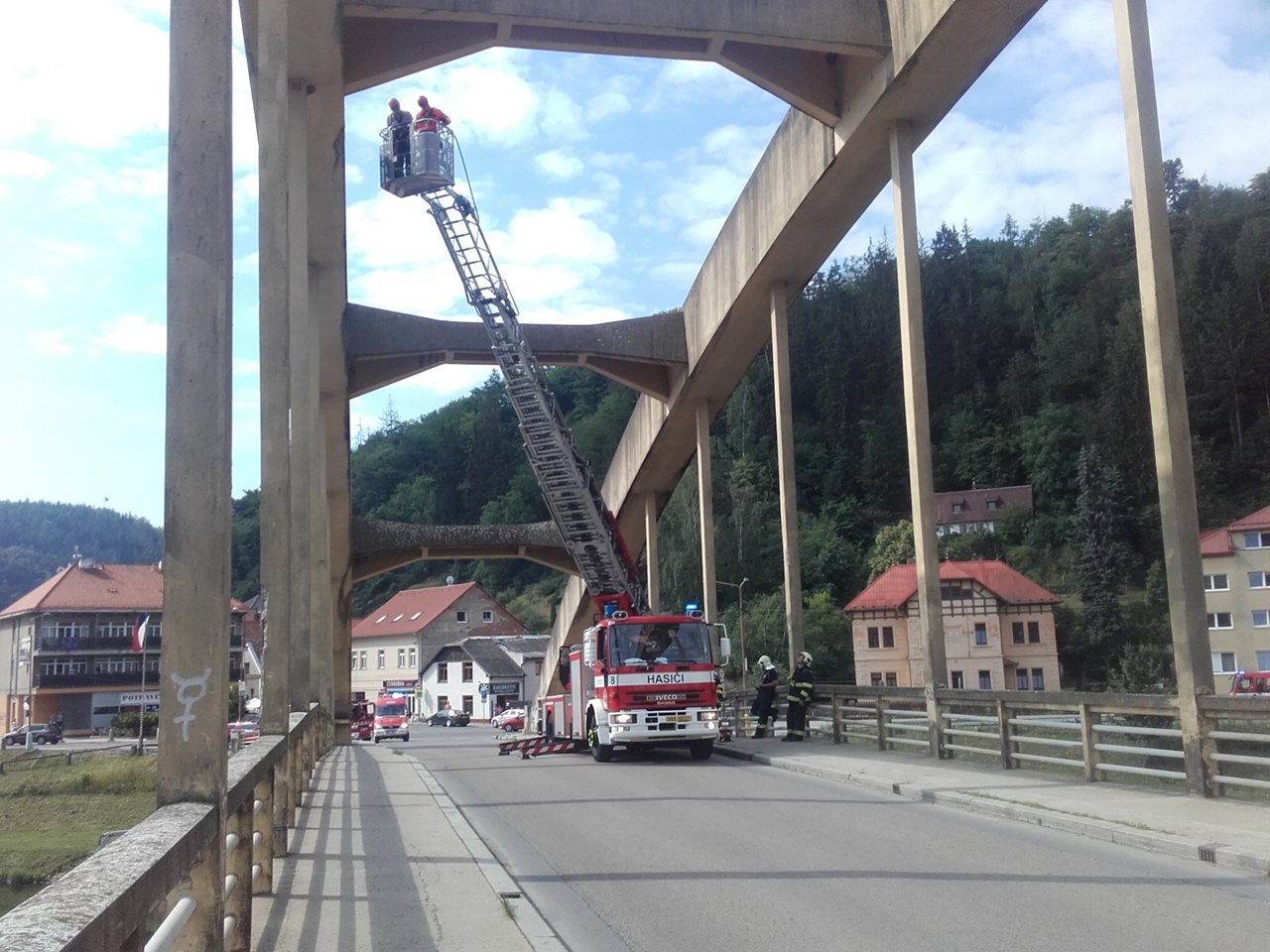 V neděli 17. června 2018 ve tři čtvrtě na devět přijala tísňová linka středočeských hasičů žádost Policie ČR o spolupráci při záchraně osoby, která ležela na jednom z oblouků štěchovického mostu Dr. Edvarda Beneše v okrese Praze-západ. Krajské operační a informační středisko HZS Středočeského kraje k události vyslalo profesionální hasiče ze stanice HZS Jílové a lezecké družstvo s velitelem čety ze stanice HZS Řevnice. Zároveň byl poplach vyhlášen i jednotce sboru dobrovolných hasičů obce Štěchovice, která vyjela i s motorovým člunem. Po příjezdu na místo se potvrdilo, že na mostním oblouku ve výšce přibližně dvanáct metrů nad vozovkou a dvacet metrů od hladiny Vltavy leží osoba, která se nehýbe. Pro její bezpečné zajištění a sundání rozhodl velitel zásahu o povolání výškové techniky. V rámci mezikrajské výpomoci vyjela na místo jednotka HZS hlavního města Prahy ze stanice Radotín se žebříkem Iveco Magirus AZ 30 opatřeným košem. Pomocí koše se lezci z Řevnic dostali až na vrchol jen něco málo přes metr a půl širokého oblouku ke spícímu muži, kterého nejdříve zajistili a poté probudili. Následně ho přendali do koše a bezpečně snesli do bezpečí na pevnou zem. Vlastní záchrannou akci, která trvala asi deset minut, zabezpečovala ze člunu na vodě štěchovická dobrovolná jednotka. Muž byl bez zjevného zranění předán Policii ČR, aby podal vysvětlení ke svému podivnému a hlavně velice riskantnímu jednání na mostě, který je od roku 1965 pro svoji architektonickou hodnotu národní kulturní památkou. Zdroj: por. Ing. Ladislav Holomčík, tiskový odbor HZS Středočeského kraje Foto:HZS Středočeského kraje Video: FOTOGALERIE