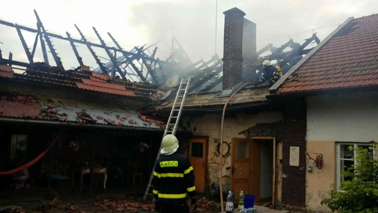 Hořící stodolu s částí obytného domu hasilo 12 jednotek, všechna zvířata byla zachráněna