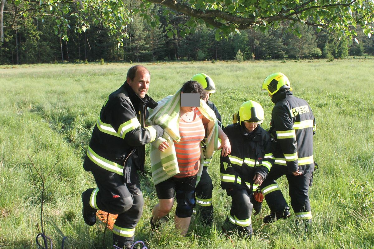 Žena byla v bažině rašeliniště u Horního Slavkova uvězněna přes hodinu, zachránit ji museli hasiči