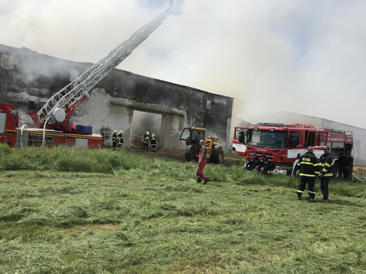 Už více než 24 hodin trvá zásah v Albrechticích nad Vltavou, části obce Chřešťovice, kde hasiči od včerejšího dopoledne likvidují požár skladu slámy.  Požár byl na tísňovou linku 112 nahlášen v neděli ,20. května 2018, v 9:23 hodin. Operační středisko hasičů vyhlásilo poplach jednotce profesionálních hasičů ze stanice Písek, kteří do Chřešťovic vyjeli včetně automobilového žebříku, a jednotkám SDH obcí Albrechtice nad Vltavou, Kluky, Chřešťovice a Protivín. Vzhledem k rozsahu události a množství povolané techniky byl v 10:06 hodin vyhlášen druhý stupeň požárního poplachu. Požár zasáhnul sklad o půdorysu 30 x 15 metrů, který byl plný balíků slámy. Hasiči zahájili vyvážení balíků ven na volné prostranství, kde je prolévali vodou. Zároveň z automobilového žebříku ochlazovali střechu skladu. V 12:18 hodin velitel zásahu nahlásil lokalizaci požáru (požár se dále nešířil a jednotky byly na místě v dostatečném množství). Po 13. hodině byl ukončen zásah automobilového žebříku. Po zbytek dne, celou noc a i v ranních a dopoledních hodinách se pak na požářišti střídaly jednotky, které neustále vyskladňovaly a prolévaly balíky slámy. V pondělí (21. května) se pak v dopoledních hodinách velitel zásahu s majitelem dohodnul, že zbytek balíků bude ponechán ke kontrolovanému vyhoření. Vyšetřovatel HZS stanovil výši vzniklé škody na 250 000,- na slámě a 750 000,- na skladu. Příčina vzniku požáru je v šetření. Zdroj: Vendula Matějů, tisková mluvčí - HZS Jihočeský kraj Foto: HZS Jihočeský kraj