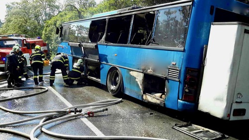 14. 5. 2018 v noci hořel autobus ve Valašské Bystřici na Vsetínsku. Hlášení o požáru odpadu ve Valašské Bystřici přijali hasiči 14.5. 2018 v 22:01 hodin. Požární poplach byl vyhlášen jednotce profesionálních hasičů z Valašského Meziříčí, jednotce hasičů města Rožnov pod Radhoštěm a dobrovolným hasičům z Valašské Bystřice. Hasiči vyjeli k požáru s třemi automobilovými cisternami. Dobrovolní hasiči byli u požáru první. Zjistili, že na místě hlášeného požáru hoří také autobus. V blízkosti autobusu byla i hořící skládka odpadu. Hasiči nasadili k uhašení požáru několik proudů vody. K doplnění vody do automobilové cisterny využili i plovoucí čerpadlo, s kterým čerpali vodu z potoku Bystřice. Po dobu provádění hasebních prací byl uzavřen provoz na místní komunikaci. Na místo se dostavila Policie České republiky a vyšetřovatel hasičů. 15. 5. 2018, 6:00 hodin Vyšetřovatel hasičů ohledáním místa požáru zjistil, že požárem je poškozena i rozvodná skříň, která byla umístěna na sloupu nadzemního vedení nízkého napětí. Autobus byl požárem zcela zničen. Příčina požáru zůstává v šetření Policie České republiky. Požár způsobil škodu v předběžné výši 5 000 000 korun. Použité foto – Hasičský sbor města Rožnov pod Radhoštěm Zdroj: nprap. Roman Žemlička – HZS Zlínského kraje