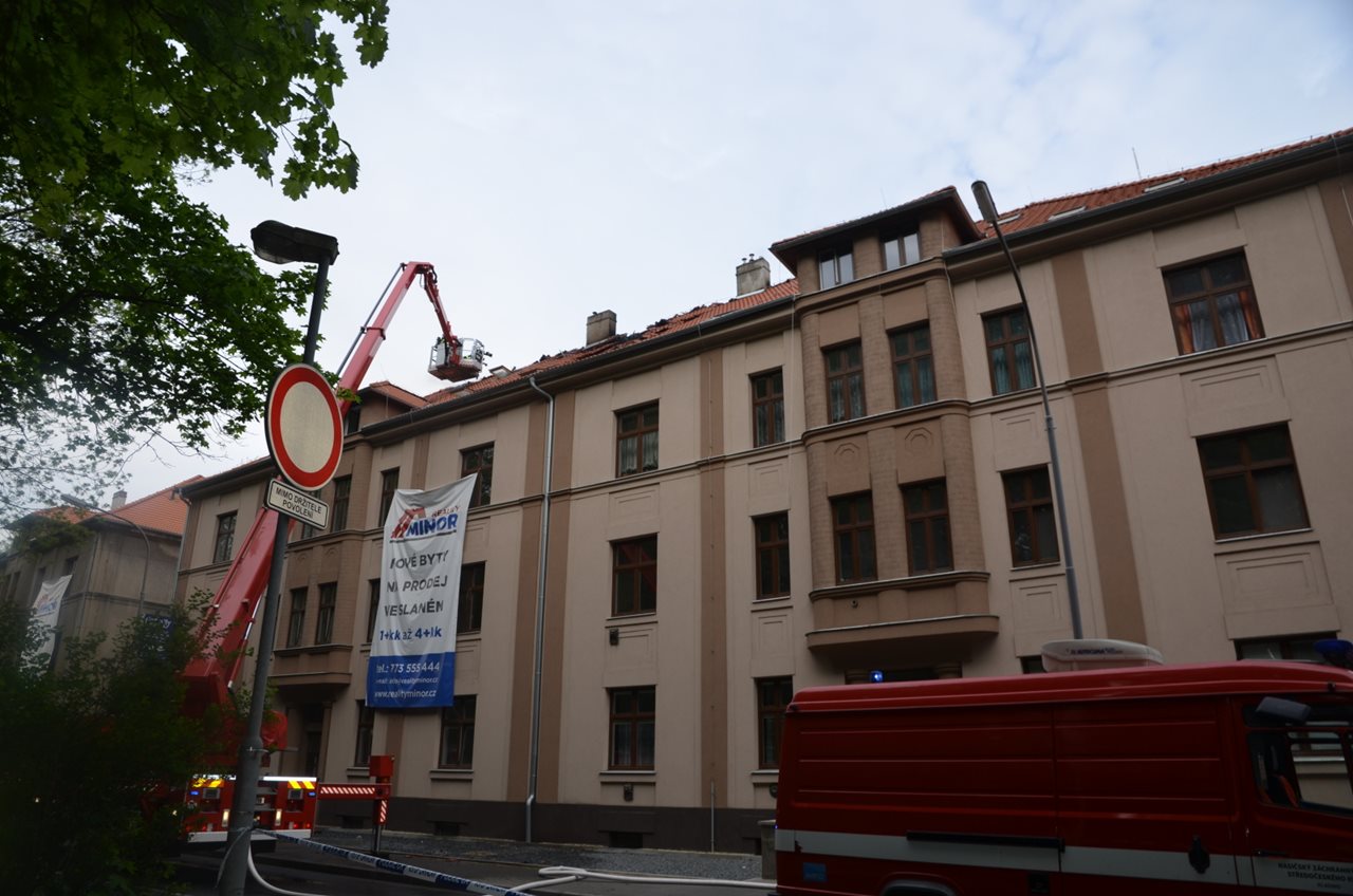 Ve středu 2. května 2018 patnáct minut po osmé hodině ranní přijala tísňová linka HZS Středočeského kraje několik oznámení o požáru bytového domu v Ouvalově ulici ve Slaném. Operační důstojník k události vyslal profesionální hasiče ze Slaného a Kladna a jednotky sboru dobrovolných hasičů obcí Brandýsek, Pchery, Plchov, Smečno a Zlonice. Zároveň byl vzhledem k většímu počtu jednotek vyhlášen druhý stupeň požárního poplachu. Na místě se sjelo celkem osm cisternových automobilových stříkaček a dva kusy výškové techniky. Průzkum odhalil rozvinutý požár střechy a podkroví třípatrového objektu, který je tvořen dvěma spojenými domy, z nichž byla značná část po kompletní rekonstrukci. Hasiči a policisté z domu vyvedli čtrnáct osob, z toho sedm dětí, a psa. Nikdo z evakuovaných nájemníků nebyl zraněn ani se nenadýchal zplodin hoření, takže přivolaná posádka zdravotnické záchranné služby nemusela nikoho ošetřovat. Hasiči natáhli vnitřkem budovy dva proudy a další nasadili z automobilové plošiny. Požár se jim podařilo lokalizovat ve tři čtvrtě na deset, to znamená po hodině a půl po ohlášení. Zásah, který probíhal v dýchací technice, pokračoval poměrně náročným rozebíráním střešní krytiny, vyhledáváním skrytých ohnisek a jejich postupným dohašováním. Kolem poledne začal velitel zásahu redukovat jednotky, které se začaly vracet na své základny. Likvidaci požáru ohlásil na operační středisko pár minut po půl jedné. Ouvalova ulice byla po celou dobu uzavřena, což ve městě způsobilo značné dopravní komplikace. Na objasnění příčiny vzniku požáru a stanovení výše škody spolupracují vyšetřovatelé HZS s kriminální policií, neboť zřejmě půjde o větší částku. Zdroj: por. Ing. Ladislav Holomčík, tiskový odbor HZS Středočeského kraje Foto:HZS Středočeského kraje Video: FOTOGALERIE