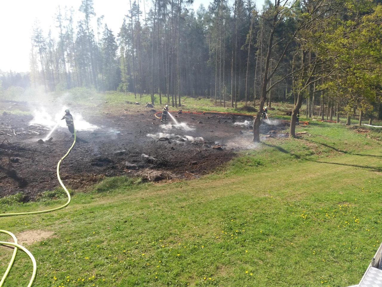 Jihočeští hasiči řeší požár trav a lesních porostů, shořela i vatra připravená již na čarodějnice