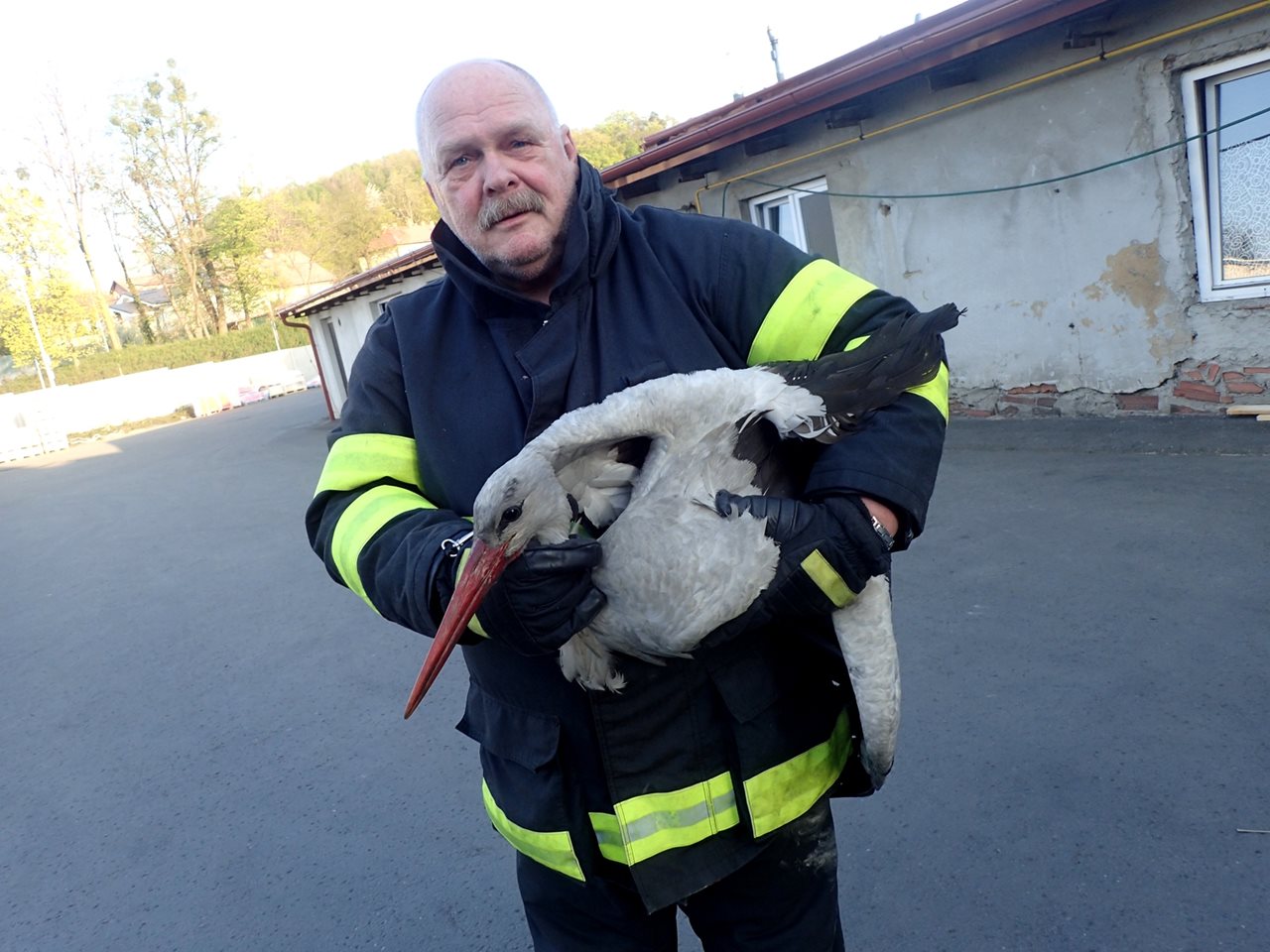 Hasiči z Novojičínska zachránili dva trucující mladé čápy – kominíky