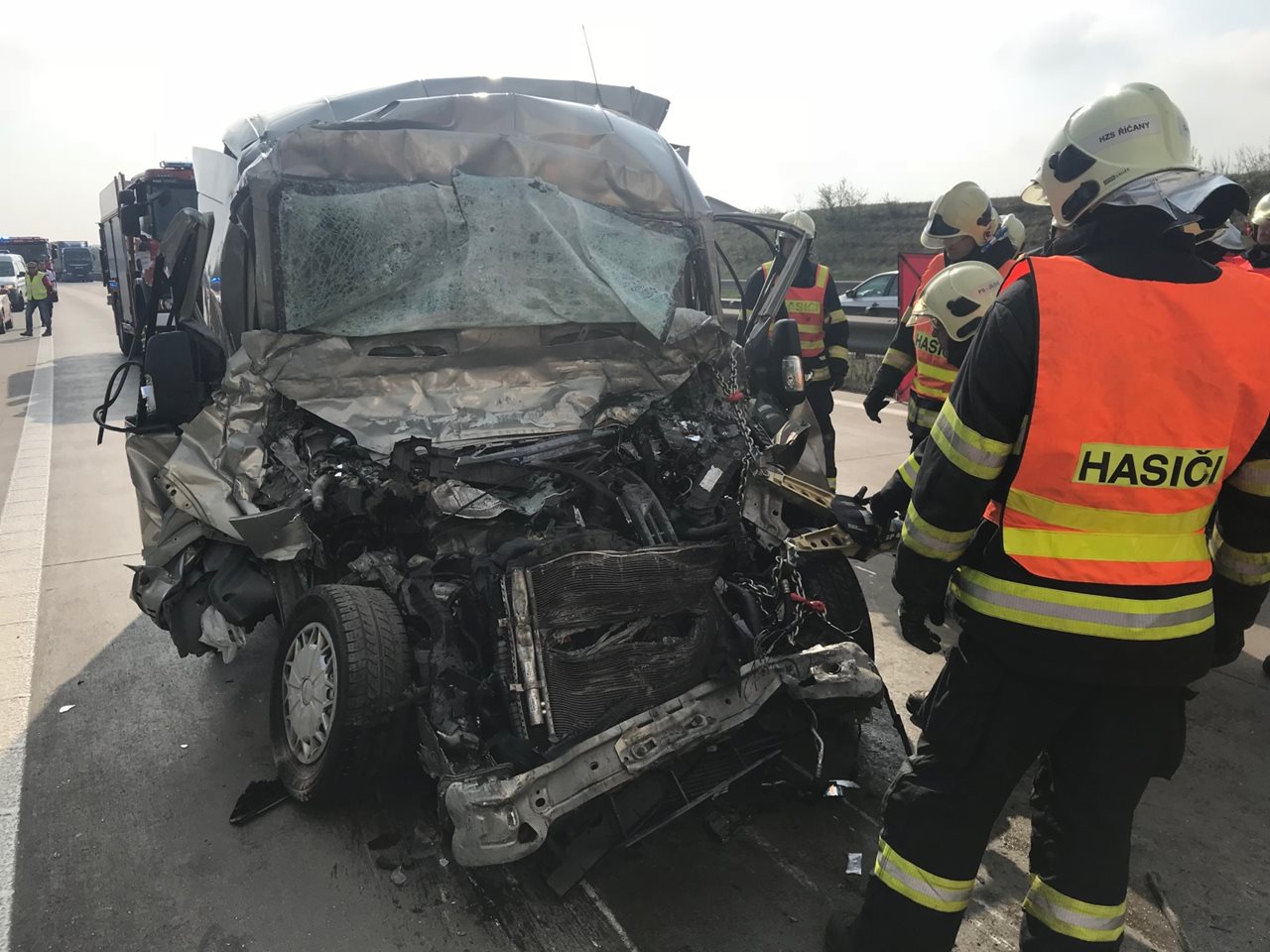 Informaci o vážné dopravní nehodě na Pražském okruhu na úrovni Jesenice ve směru od brněnské dálnice k letišti přijala tísňová linka HZS Středočeského kraje v úterý 17. dubna 2018 v 8.38 hodin. Operační důstojník vyslal k události profesionální hasiče z Říčan a Jílového, v rámci mezikrajské výpomoci vyjela také jednotka HZS hlavního města Prahy ze stanice Chodov. Po částečně komplikovaném příjezdu vytvořenou dlouhou kolonou vozidel bylo na místě zjištěno, že přibližně na kilometru 0,5 narazila v pravém jízdním pruhu dodávka zezadu do kamionu a zůstala celou kabinou zaklíněná pod návěsem. Část jednotek zajišťovala místo nehody a zasypávala uniklé provozní kapaliny, ostatní hasiči instalovali kolem dodávky zástěnu a snažili se dostat do prostoru zdemolované kabiny, kde následně objevili řidiče, u kterého přítomný lékař zdravotnické záchranné služby konstatoval exitus. Nikdo jiný ve vozidle necestoval, řidič kamionu vyvázl z kolize bez zranění. Po zadokumentování dopravní nehody přivolanou kriminální policií byla dodávka navijákem vytažena. Pak hasiči pomocí hydraulického vyprošťovacího zařízení vyprostili tělo řidiče, které předali pohřební službě. K odtažení obou havarovaných vozidel byla povolána specializovaná firma a místo události si převzala Policie ČR. K úklidu vozovky se dostavila technika ze Střediska správy a údržby dálnic. Jednotky se krátce před jedenáctou hodinou začaly vracet na své základny. Po celou dobu byl Pražský okruh v uvedeném směru uzavřen a policie odkláněla dopravu na vedlejší komunikace. Říčanská stanice byla zálohována místní dobrovolnou jednotkou. Zdroj: por. Ing. Ladislav Holomčík, tiskový odbor HZS Středočeského kraje Foto:HZS Středočeského kraje Video: FOTOGALERIE