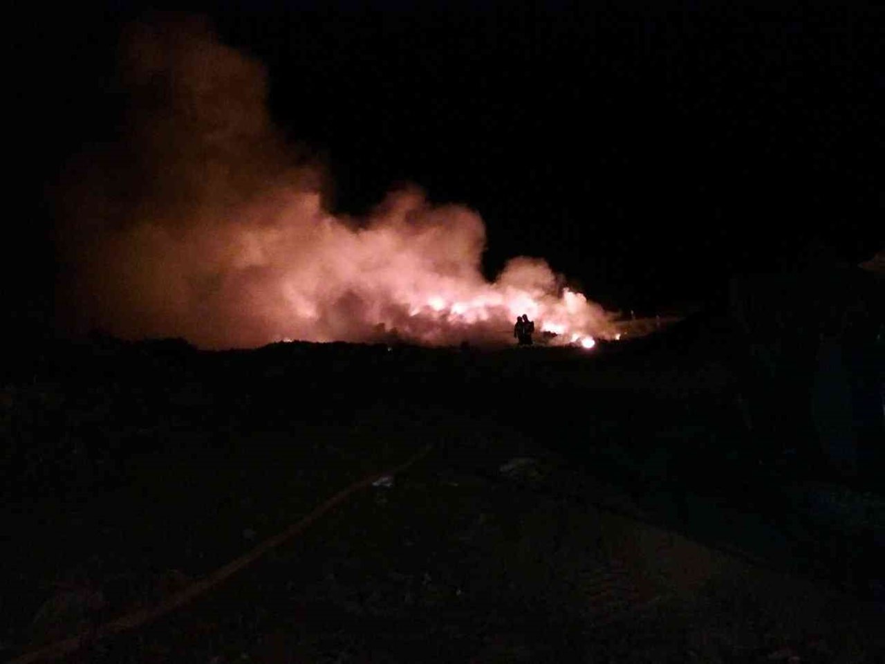 Noční požár skládky v Hradčanech na Přerovsku