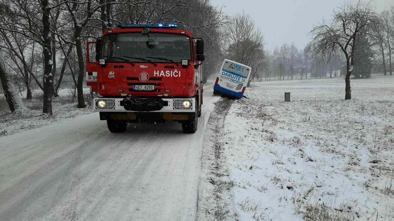 Sníh v pátek ráno, 16.února 2018, pokryl vozovky a hasiči likvidovali následky řady dopravních nehod. K první ranní nehodě hasiči vyjížděli v 5.50 hodin a zasahovala u ní jednotka hasičů z Pardubic. Nehoda se stala na silnici ve Starých Čívicích, kde skončilo osobní vozidlo na střeše a v příkopu. Při kolizi byla zraněna jedna osoba. Hasiči vozidlo vyprostili a otočili zpět na kola. K další nehodě vyjížděli hasiči v 6.11 hodin do Třemošnice, kde řidič s osobním vozem skončil částečně v příkopu a na střeše. Posádka zdravotnické záchranné služby odvezla do nemocnice jednu zraněnou osobu. Hasiči provedli vyproštění vozu i přetočení zpět na kola. V Pastvinách hasiči zasahovali v 6.51 hodin u kolize dodávky, se kterou řidič narazil do stromu. Nehoda se obešla bez zranění. Hned tři vozy havarovaly nezávisle na sobě v Chrudimi těsně před sedmou hodinou ranní. Všechny vozidla skončila v příkopech. Nehody se obešly bez zranění. V Radiměři hasiči v 7.32 hodin vytahovali pomocí jeřábu zapadlý autobus. Ke zranění osob nedošlo. V kamenné zídce skončil svou jízdu řidič osobního auta v obci Smrček. Hasiči byli přivoláni k místu nehody v 8.26 hodin. Z vozidla unikaly provozní náplně, které hasiči posypali sorpčním materiálem. Kolize se obešla bez zranění. Další automobil vytahovali z příkopu hasiči v Chrudimi, a to krátce po půl deváté. Do Kerhartic směřovali hasiči v 9.11 hodin. Řidič tady s dodávkou skončil ve srázu a hrozilo, že sjede do řeky. Hasiči dodávku vytáhli pomocí navijáku. Zdroj: Vendula Horáková, tisková mluvčí – HZS Pardubického kraje Foto: HZS Pardubického kraje FOTOGALERIE