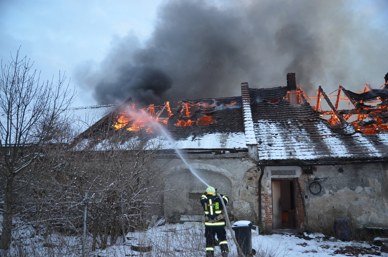 Požár starého statku v Hřebči likvidován ve druhém poplachovém stupni