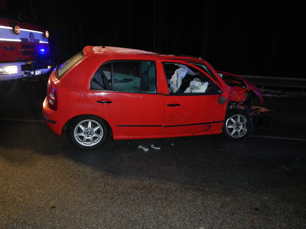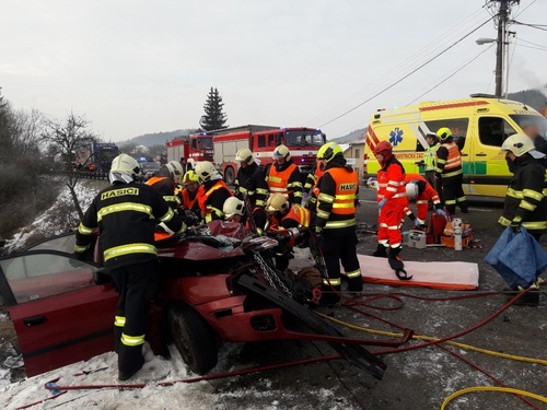 Vážná dopravní nehoda se stala ve večerních hodinách v pátek 19. ledna 2018 v Týně nad Vltavou, části obce Nuzice. Nehoda dvou osobních automobilů byla na tísňovou linku ohlášena v 21:54 hodin jako nehoda s nutností vyproštění zraněných osob. K zásahu vyjeli profesionální hasiči ze stanice Týn nad Vltavou, poplach byl vyhlášen také jednotce SDH obce Bechyně. Do Nuzic samozřejmě vyjely také Policie ČR a ZZS, vzlétnul také vrtulník LZS. Průzkum na místě nehody potvrdil původní ohlášení: jednalo se o srážku dvou osobních automobilů, a to značek VW Passat a Škoda Fabia. Hasiči ihned začali pomáhat zraněným dostat se ze zničených aut ven. Zdravotníkům nakonec předávali celkem 5 zraněných osob. Jedna z nich musela být vzhledem ke svému zdravotnímu stavu do nemocnice transportována letecky. Zároveň s vyproštěním hasiči zajistili havarované vozy proti vzniku požáru a úniku provozních kapalin. Po ukončení záchranných prací jednotka vyčkala do ukončení šetření policistů a okolo jedné hodině ranní asistovala při naložení havarovaných aut na vůz odtahové služby. Velitel zásahu si dále vyžádal spolupráci SÚS pro nasolení zledovatělé silnice. Po půl druhé hasiči zásah ukončili, nehodu předali Policii ČR. Zdroj: Vendula Matějů, tisková mluvčí - HZS Jihočeský kraj Foto: HZS Jihočeský kraj FOTOGALERIE
