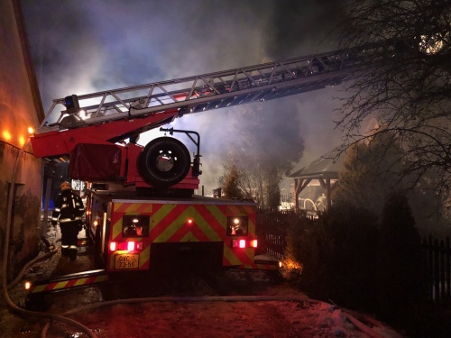 Osm jednotek hasičů zasahovalo v noci na pátek 19.1.2018 až do ranních hodin u požáru rodinného domku a přilehlé dílny v Odrách, místní části Loučky (okres Nový Jičín). Hořet začalo v souvislosti s topením, přesná příčina vzniku požáru se upřesňuje. Předběžná škoda byla odhadnuta na 900 tisíc korun. Při zásahu byl lehce zraněn jeden dobrovolný hasič.             Operační středisko hasičů bylo o požáru informováno zhruba půl hodiny po čtvrteční půlnoci. Do Louček vyjely dvě jednotky Hasičského záchranného sboru Moravskoslezského kraje (HZS MSK) – ze stanic Bílovec a Nový Jičín, společně s nimi šest jednotek dobrovolných hasičů – Odry-Loučky, Odry, Spálov, Fulnek, Starý Jičín a Studénka.             Už při příjezdu první jednotky hasičů hořela střecha obytné části vydatným plamenem a také přilehlá hospodářská část s dílnou. Zásah značně komplikovaly hromady palivového a dalšího dřeva, umístěného po obvodu hořícího domu, na které hořící střecha brzy propadla. Hasiči museli také rychle vyklidit a dohasit na volné ploše seno, uskladněné v budově. Zasahující jednotky přitom uchránily před ohněm druhou hospodářskou budovu, stojící vedle hořící části.             Oheň dostali hasiči pod kontrolu za dvě a půl hodiny, když jim pomáhal automobilový žebřík AZ 30 Iveco z novojičínské stanice HZS MSK. Dohašování jim zabralo dalších více než pět hodin, a to až do pátečního rána. Vyšetřovatel HZS MSK vyloučil úmyslné zapálení, oheň vznikl v souvislosti s topením. Zdroj: Petr Kůdela, tiskový mluvčí - HZS Moravskoslezského kraje Foto: HZS Moravskoslezského kraje FOTOGALERIE