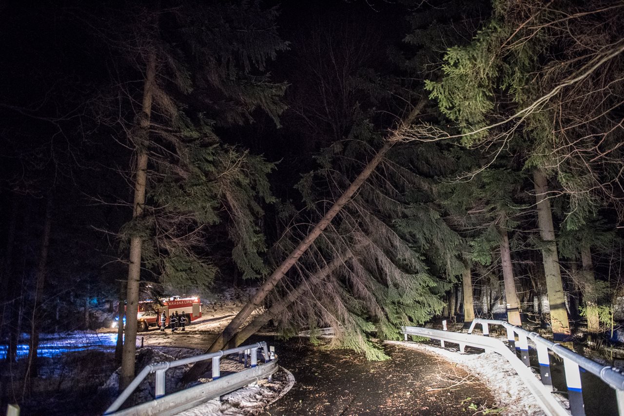 Desítky popadaných stromů a několik dopravních nehod museli odstranit a řešit hasiči v Karlovarském kraji po náhlém poryvu větru