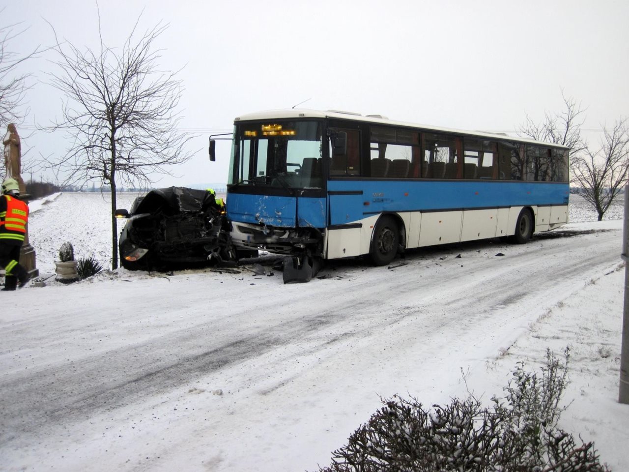 V souvislosti s nepříznivým počasím a namrzajícím sněhem zaznamenali hasiči v úterý 16.ledna 2018 odpoledne nárůst počtu výjezdů k dopravním nehodám v kraji. V časovém rozmezí 13:00 – 19:00 hodin zasahovali hasiči v celém kraji u osmi dopravních nehod (dále jen DN), u kterých došlo také ke zranění. Závažnější nehodu řešila jednotka v Kurovicích na Kroměřížsku, kde došlo ke střetu osobního automobilu s autobusem. V době nehody cestovalo v autobuse asi 15 osob. Při střetu došlo ke zranění řidiče osobního vozidla a jedné ženy z autobusu. Oba byli převezeni zdravotnickou záchrannou službou do nemocnice. Ke zranění dalších osob nedošlo. Po likvidaci úniku provozních náplní a provedení úklidu komunikace se jednotka vrátila zpět na základnu. Celkový přehled: 13:22 hod. JMK-HO, Blatnice p. Sv. Antonínkem - DN tří osobních automobilů 13:59 hod. ZL, Zádveřice - DN jednoho osobního vozu, bez zranění, bez úniku PHM 14:20 hod. VS, Střítež n. Bečvou - DN dodávky a traktoru, bez zranění 14:24 hod. UH, Pitín - osobní automobil v příkopu, bez zranění 14:24 hod. VS, Zubří - osobní automobil v příkopu, bez zranění 15:17 hod. KM, Kurovice - DN osobního automobilu a autobusu, zraněny dvě osoby (viz. výše) 16:42 hod. VS, Hovězí - DN, osobní automobil na střeše, bez zranění 17:20 hod. ZL, Napajedla - vytažení automobilu, bez zranění Zdroj: kpt. Ing. Pavel Řezníček – HZS Zlínského kraje, Foto: HZS Zlínského kraje