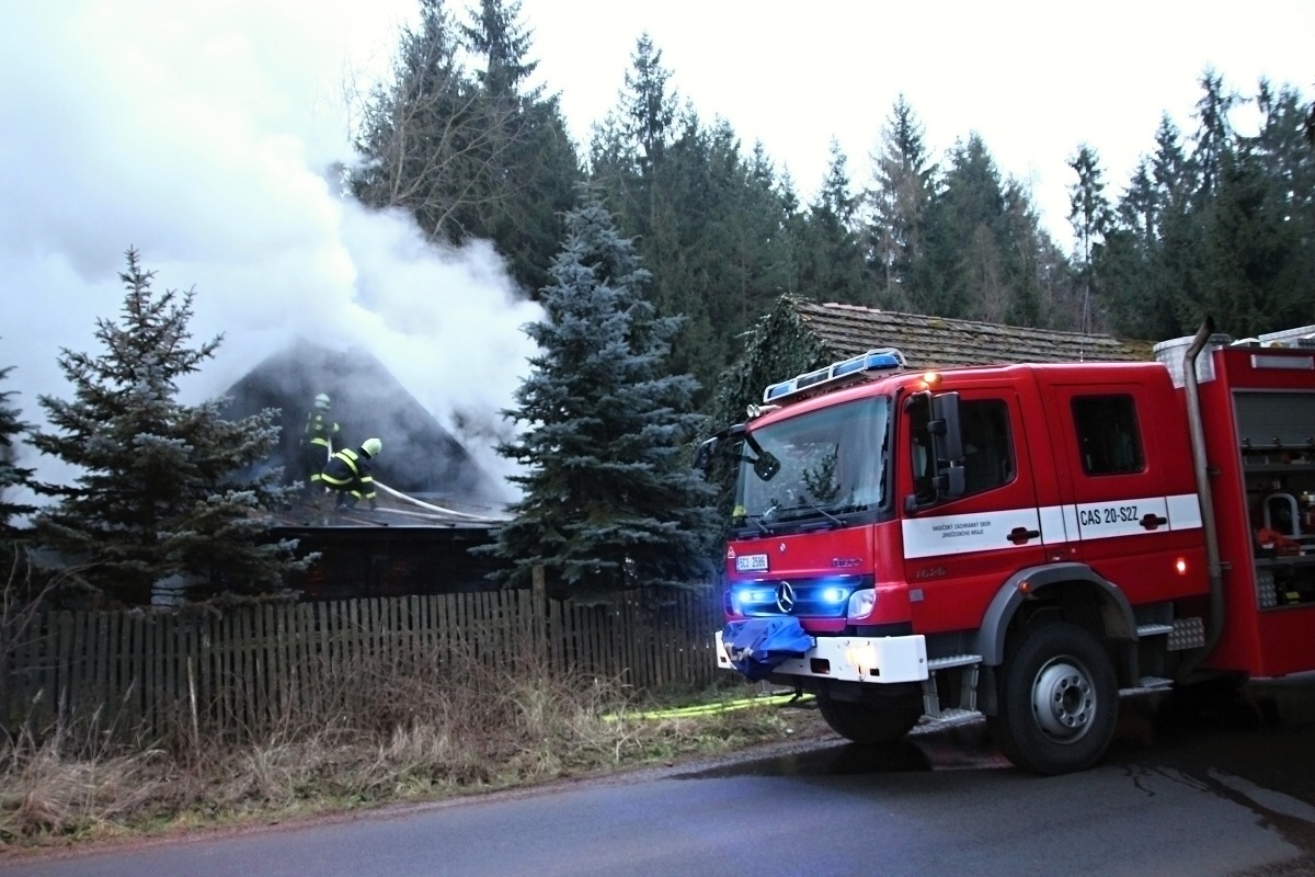 Dnes, 10.ledna 2018, od ranních hodin zasahují hasiči v Choustníku, části obce Kajetín u požáru domu. Prvotní informaci o požáru obdrželo operační středisko hasičů z dispečinku zdravotnické záchranné služby. Následně pak začala přicházet volání na tísňovou linku112. K požáru vyjeli krátce po půl osmé včetně výškové techniky profesionální hasiči ze stanic Soběslav a Tábor. Operační středisko dále svolalo jednotky SDH obcí Choustník a Tučapy. Celkem byly do Kajetína vyslány osádky čtyř cisteren, automobilová plošina a dopravní automobil. Na místě požáru hasiči průzkumem zjistili, že hoří dřevěná hájenka, která stojcí zcela samostatně na kraji lesa. Ohnisko požáru jednotky našly v přístavku těsně napojeném na dům. Ihned zahájily hašení a požár krátce po osmé hodině dostaly pod kontrolu. V tuto chvíli probíhá dohašování. Závěrečný průzkum pak hasiči provádí zároveň s termokamerou, která je schopná jim odhalit i možná skrytá ohniska. V hájence žila rodina se třemi dětmi. Jedno z nich utrpělo popáleniny a bylo společně s popáleným otcem letecky transportováno do popáleninového centra na pražských Vinohradech. Matka s dalším dítětem předškolního věku byla odvezena do nemocnice s podezřeným na nadýchání. Do nemocnice za nimi z důvodu špatného psychického stavu matky byl vyslán také psycholog HZS. Přestože požár není ještě plně uhašen, vyšetřovatel stanovil již předběžnou škodu na 1 500 000,-. Příčina vzniku požáru je předmětem dalšího šetření. Jednotky HZS u požáru spolupracují s Policií ČR. Zdroj: Vendula Matějů –tisková mluvčí Jihočeský kraj Foto: HZS Jihočeský kraj FOTOGALERIE