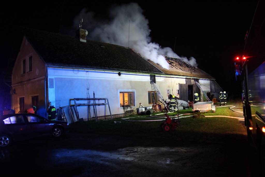 Sedm hasičských jednotek likvidovalo požár statku ve Spáleništi u Dobrušky
