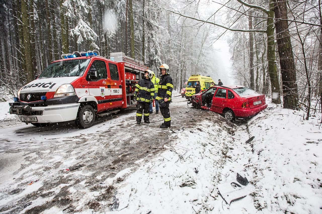 Silné sněžení a dopravní nehody zaměstnaly hasiče v Olomouckém kraji