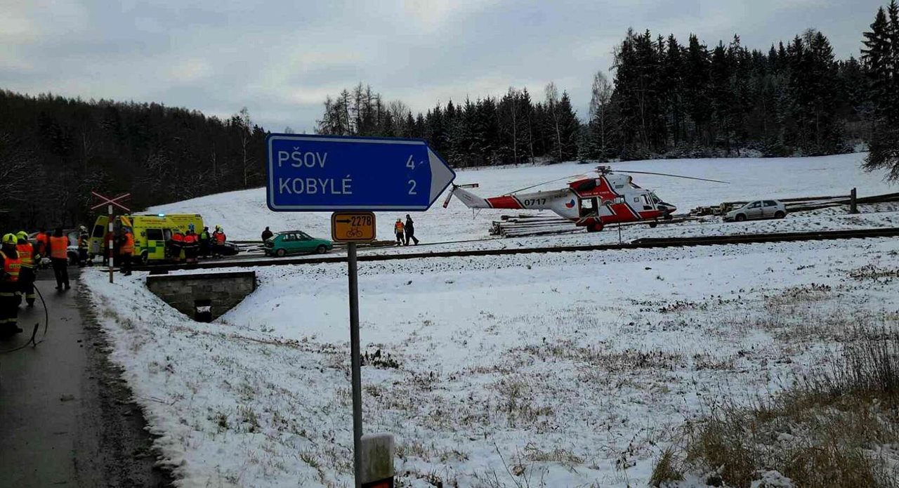 Vlak se na přejezdu u Žlutic v Karlovarském kraji srazil s autem, tři osoby museli hasiči vyprostit.Na místě železniční nehody zasahoval také záchranářský vrtulník