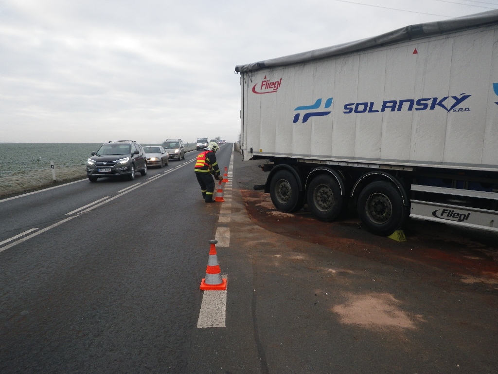 Z kamionu po nehodě unikla nafta na dálnici D1
