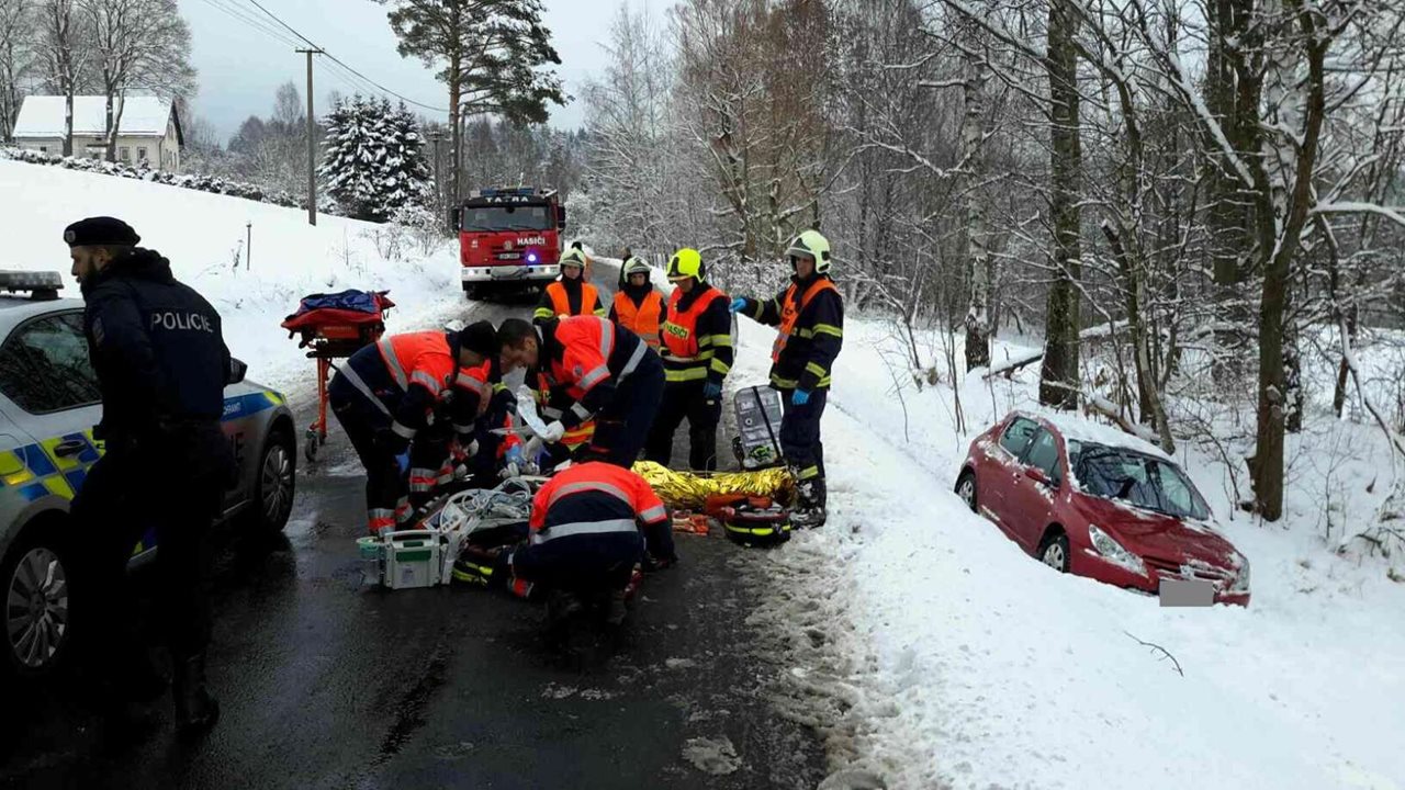 Jako dopravní nehoda s vyproštěním byla nahlášena hasičům událost v pondělí 18.prosince 2017, před polednem, u Rotavy. Na silnici z Rotavy na Smolnou sjelo osobní auto mimo vozovku, v době příjezdu hasičů na místo byl řidič ve vozidle v bezvědomí a nedýchal. Hasiči tak společně s hlídkou policie muže vynesli na pevný povrch a okamžitě zahájili resuscitaci. Použili také přístroj AED (automatizovaný externí defibrilátor), s jehož pomocí a čtyř výbojů byly oživovací pokusy úspěšné. Po příjezdu záchranné služby na místo si muže převzala a odvezla do nemocnice. Po celou dobu záchrany byla silnice zcela uzavřena. Jednotka hasičů ze stanice Kraslice je součástí projektu ZZS Karlovarského kraje s názvem „Časná defibrilace v Karlovarském kraji“. Ten je zaměřený na zavedení systému First responderů při řešení situací náhlé zástavy oběhu mimo nemocnici. First responder je osoba nebo výjezdová skupina či posádka v rámci IZS, která je proškolená a schopná poskytnout resuscitaci včetně užití AED. Takto proškolených a vybavených jednotek hasičů je v kraji už celá řada a mohou tak na místě až do příjezdu záchranné služby poskytnout účinnou záchranu. Zasahující jednotky: HZS Kraslice (CAS 20 T815) JSDH Rotava (CAS 20 T815) Zdroj: Martin Kasal, tiskový mluvčí – HZS Karlovarský kraj Foto: HZS Karlovarský kraj FOTOGALERIE