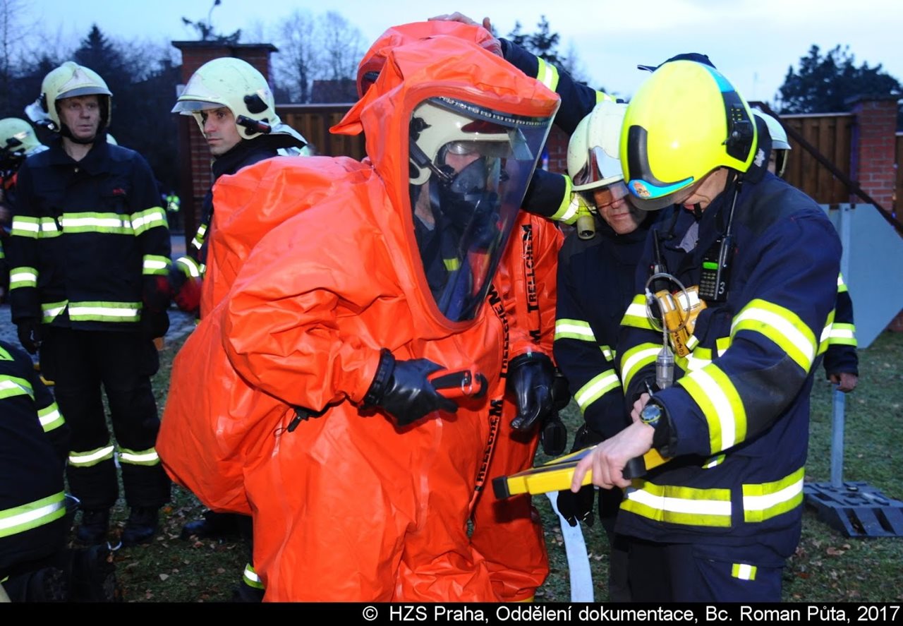 Dne 11.12.2017 v 15:22 hodin došlo v ulici Komořanská k úniku chlóru z poškozeného ventilu speciálního kotle v chemické výrobě soukromé firmy. Na místo postupně vyjely jednotky z Modřan, Strašnic, Radotína, Krče, Petřin, Chodova a centrální stanice. Hasiči zasahovali v chemických oblecích a dýchací technice, pomocí vodní mlhy zkrápěli chlórový mrak tak, aby neunikl z objektu výrobny. Během zásahu požádal velitel o uzavření ulice Komořanská a vymezil nebezpečný prostor. Policisté také informovali obyvatele o případném nebezpečí. Byl zřízen štáb velitele zásahu a dekontaminační pracoviště. Na místě bylo v záloze několik vozů ZZS, nikdo však nemusel být ošetřen. Hasiči z objektu preventivně evakuovali asi stovku zaměstnanců. Po celou dobu zásahu bylo chemickou službou pražských hasičů monitorováno okolí místa úniku, k případu se také dostavila zástupkyně Odboru životního prostředí Magistrátu hl. m. Prahy. Po 17:00 hodině byla ulice Komořanská opět průjezdná a měření výskytu chlóru v ovzduší potvrdilo, že nebezpečná mez již není překročena. Mrak chlóru se hasičům podařilo udržet v areálu podniku. Po 18:00 hodině byl případ předán majiteli a Policii ČR. Proč k úniku došlo bude předmětem dalšího šetření. Zdroj: Martin Kavka – tiskový mluvčí HZS Praha, Foto:HZS Praha FOTOGALERIE