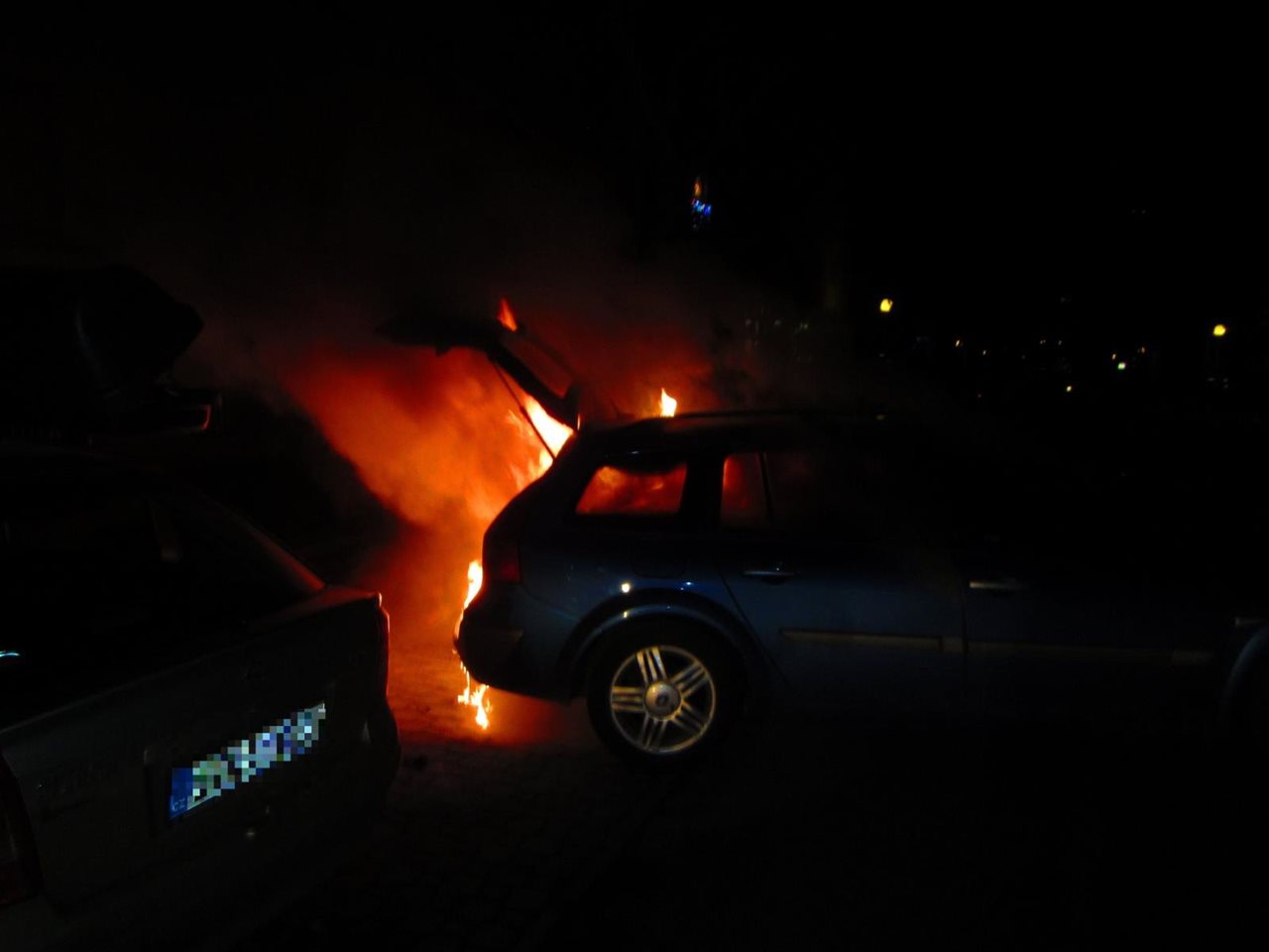 V sobotu 9. 12. 2017, na ulici Sadová ve Zlíně hořel dnes večer osobní automobil Renault Megane. Požární poplach byl vyhlášen v 17:01 hodin profesionálním hasičům z centrální požární stanice Zlín a dobrovolným hasičům statutárního města Zlín, zbrojnice Prštné. Hasiči přijeli k požáru s dvěma automobilovými cisternami. Plameny hořícího automobilu ohrožovaly blízko stojící zaparkovaný automobil. Hasiči požár uhasili jedním vysokotlakým proudem vody. Hořící vůz byl uhašen do 9 minut od příjezdu hasičů. Manželský pár hasičům sdělil, že když chtěli zaparkovat vozidlo, uviděli ze zádní spodní části vozu probleskovat plamen. Po zastavení vozu se snažili vznikající požár uhasit hasicím přístrojem. Při požáru nedošlo k zranění osob. 9. 12. 2017, 21:00 hodin Při nakládání osobního automobilu na vůz odtahové služby z vozu Renault unikla nafta. Profesionální hasiči se tak museli vrátit na místo a uniklou naftu zasypat sypkou sorbční látkou. Vyšetřovatel hasičů na základě získaných poznatků stanovil jako příčinu požáru iniciaci hořlavých materiálů v blízkosti výfukového potrubí. Škoda způsobená požárem byla určena v předběžné výši 56 000 korun. Duchapřítomností majitelů a rychlým hasebním zásahem byl uchráněn majetek v předběžné výši 10 000 korun. Zdroj: nprap. Roman Žemlička – HZS Zlínského kraje Foto: HZS Zlínského kraje