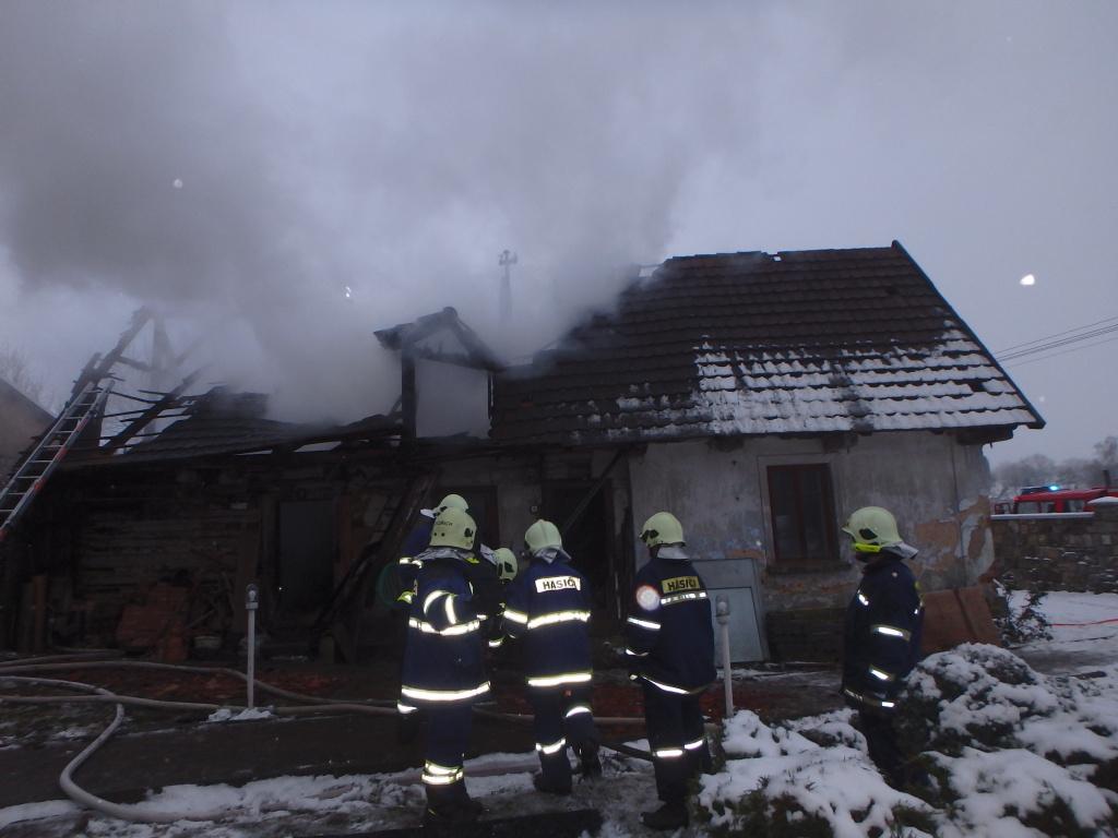 U požáru staršího rodinného domu zasahovaly dnes, 5.prosince 2017, ráno v 6:10 hodin v obci Doubravice čtyři jednotky požární ochrany. Při příjezdu hasičů na místo požáru hořela střecha staršího domu, který byl z části zděný a z části roubený. Kromě profesionálních hasičů ze Dvora Králové nad Labem zasahovali na místě i dobrovolní hasiči z Dubence, Bílé Třemešné a Miletína. Jednotky okamžitě po svém příjezdu provedli lokalizaci a likvidaci požáru. Hasební zásah musel probíhat za použití dýchací techniky. Při požáru nedošlo ke zranění. Šetřením bylo zjištěno, že dům již nesloužil k bydlení, ale byl užíván jako sklad pro vyřazené předměty a věci majitele. Část domu byla využívána i jako dílna. Vyšetřovatel příčin požáru na místě odhalil, že příčinou bylo v tomto případě vznícení stropního trámu od povrchové teploty kouřovodu kamen na pevná paliva. Požárem došlo k zničení větší části střešní konstrukce i stropní konstrukce nad dílnou. Dále došlo k poškození kotoučové pily, elektrického nářadí, svářecího agregátu, pracovního stolu, ručního nářadí, elektrické instalace, spojovacího materiálu atd. Přímá škoda způsobená požárem byla odhadnuta na částku asi sto tisíc korun. Podařilo se však uchránit hodnoty v částce asi dvou milionů korun. Zdroj: por. Libor Halouzka, por. Mgr. Martina Götzová FOTO: HZS Královéhradeckého kraje
