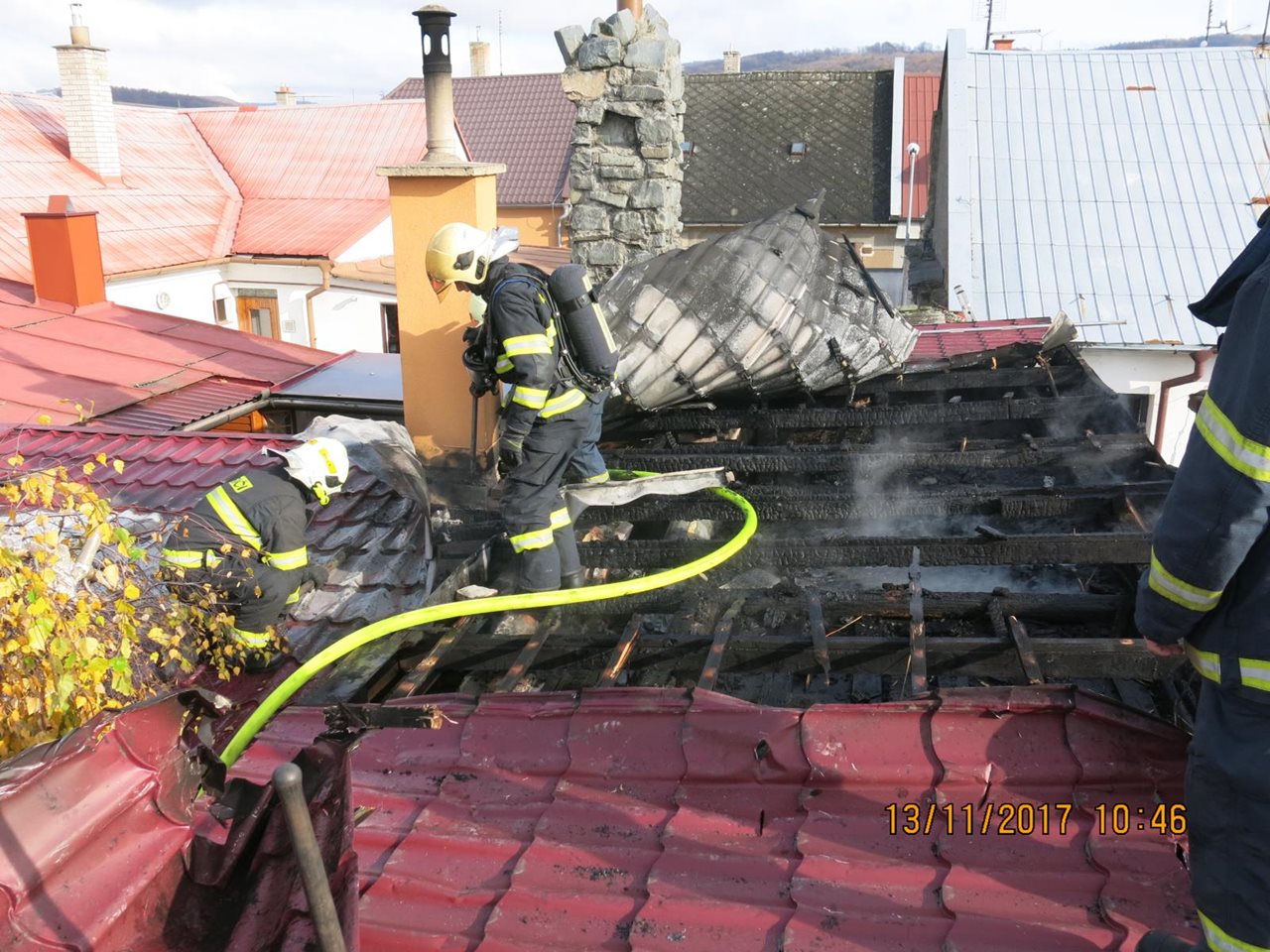 V průběhu tohoto víkendu hořelo již ve druhém rodinném domě na Novojičínsku. Tentokrát byla požárem úplně zničena střecha rodinného domu v Mankovicích, škoda přesáhla 1 milion korun. Operační a informační středisko HZ Moravskoslezského kraje přijalo tísňový hovor ohlašující požár střechy v neděli 12. listopadu 2017 v 15:16 hodin. Požár střechy byl viditelný ze širokého okolí a na jeho likvidaci se podílelo 8 hasičských jednotek. Jedna jednotka HZS Moravskoslezského kraje z Nového Jičína a sedm jednotek dobrovolných hasičů z okolních obcí. Po příjezdu hasičů byla již zasažena požárem celá střecha. Hasičům se již v 15:42 podařilo požár lokalizovat a zabránit tak jeho rozšíření do dalších prostor rodinného domu. Hasiči následně rozebírali stropní konstrukce, vyklízeli půdní prostory a dohašovali ohniska požáru.  Aktuálně, v 18:00 hodin, hasiči dokončují rozebírání konstrukcí a dohašování ohnisek požáru. V průběhu celé noci budou na místě zajišťovat dohled dvě jednotky dobrovolných hasičů. Požár zapříčinila špatná konstrukce stropu, ve kterém dřevěný stropní trám zasahoval do komínového tělesa. Škoda způsobená požárem bude vyčíslena v následujících dnech, ale je zřejmé, že přesáhne jeden milion korun. Při požáru nedošlo k žádnému zranění nebo usmrcení osob. Zdroj: por. Ing. Marek Gašparín, Ph.D. zastupující tiskový mluvčí HZS Moravskoslezského kraje Foto: HZS Moravskoslezského kraje