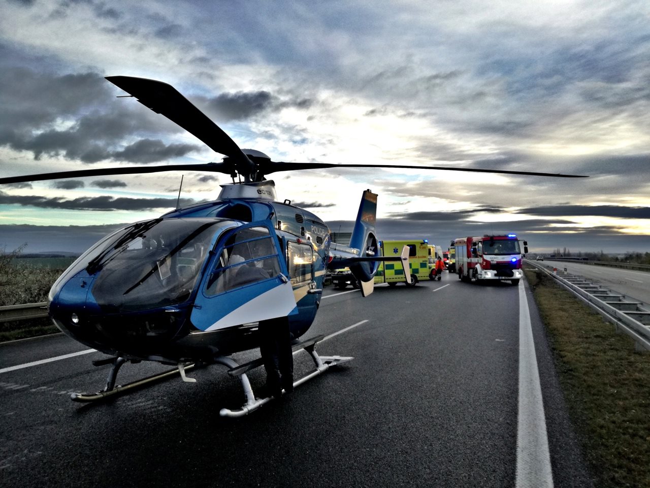 K vážné nehodě mikrobusu na karlovarské dálnici letěl vrtulník