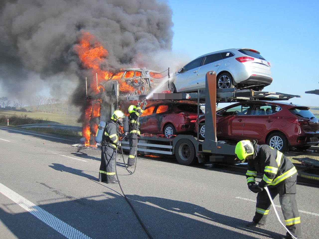 Rušnou noc měli královédvorští profesionální hasiči. Během dnešní noci z 5.na 6,listopadu 2017 likvidovali hned tři požáry vozidel. V jednom případě se jednalo o osobní automobil, dvakrát hořela dodávka. Všechny tři požáry spolu souvisí, byly založeny úmyslně. U požáru osobního automobilu na Benešově nábřeží zasahovali profesionální hasiči ze Dvora Králové nad Labem dnes ve 2:34. Jednalo se o požár v motorovém prostoru. Na místo vyjela cisternová automobilová stříkačka. Hasiči požár uhasili a předali místo vyšetřovateli příčin požárů. Požár se obešel bez zranění. Škoda na shořelém vozidle a na vedlejším vozidle, jenž bylo poškozeno následkem požáru, byla odhadnuta na 100 tisíc korun. Podruhé vyjížděli královédvorští profesionální hasiči k hořící dodávce. Oznámení bylo přijato v 3:45. Dodávka se nacházela na parkovišti u obchodního domu v průmyslovém obvodu města Dvůr Králové nad Labem. Vozidlo hořelo v plném rozsahu a hasiči tak museli použít zařízení pro rychlý zásah, tzv. vysokotlak. Při požáru nebyl nikdo zraněn, na místo byl povolán vyšetřovatel příčin požáru. Škoda byla v tomto případě odhadnuta asi na 50 tisíc korun. Do třetice vyjížděli královédvorští profesionální hasiči opět k hořící dodávce. Událost byla nahlášena v 5:50. Hořící vozidlo se nacházelo taktéž v průmyslovém obvodu města Dvůr Králové nad Labem. Hasiči po svém příjezdu dohašovali už jen ohniska požáru. Škoda se pohybovala kolem 40 tisíc korun. Vyšetřovatel příčin požáru konstatoval, že všechny tři automobily byly zapálené úmyslně dosud nezjištěnou osobou. Věc vyšetřuje Policie ČR. Zdroj: por. Mgr. Martina Götzová Foto: HZS Královéhradeckého kraje