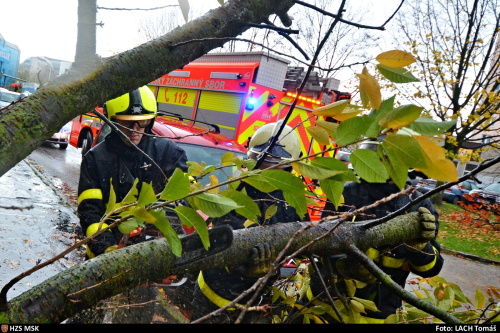 Silný vítr, který se přehnal Českou republikou, zaměstnal i hasiče v Moravskoslezském kraji. Od půlnoci do 17:00 řešili více než 350 událostí, dalších 100 mají ještě před sebou a jednotky k nim budou postupně přejíždět. První ze zásahů přebrali operátoři krátce před nedělní půlnocí. Až do rána bylo podobných zásahů pouze deset, v průběhu dopoledne pak začal počet volání na tísňovou linku prudce stoupat. Krajské operační a informační středisko v Ostravě rovněž kvůli velkému vytížení ostatních krajů přebíralo některé tísňové hovory ze všech částí republiky. Počet operátorů byl oproti standardnímu “mírovému” stavu navýšen, další dva pak byli připraveni v pohotovosti. Zásahové jednotky jsme nijak neposilovali, naše početní stavy jsou v rámci všech stanic v kraji dostatečné na dodržení plánu plošného pokrytí. Ve velkém jsme do zásahů zapojili dobrovolné jednotky, především ty s územní působností, které mohou zasahovat i mimo katastr svého zřizovatele. Skladba zásahů se po celý den držela stejná - drtivá většina připadala na odstraňování padlých stromů, především z komunikací, občas z drátů elektrického vedení. V několika případech stromy poškodily zaparkovaná vozidla. V menší míře nás pak zaměstnávalo upevňování uvolněných či poničených střešních konstrukcí. Meteorologická výstraha platí do dnešních 19:00. Předpokládáme, že hasiči budou následky odstraňovat i během noci a zítřejšího dne. Nemám informaci o tom, že by byl v průběhu dne při zásazích někdo zraněn. Zdroj: Petr Kůdela, tiskový mluvčí - HZS Moravskoslezského kraje Foto: HZS Moravskoslezského kraje