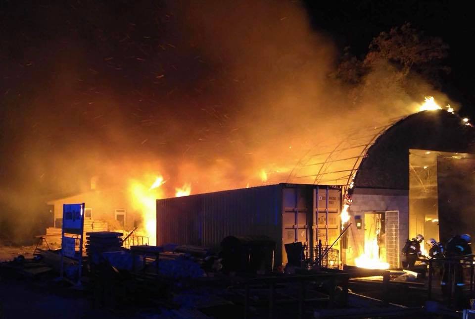 Pět jednotek z řad profesionálních a dobrovolných vyslalo krátce před půlnocí v pondělí 30.10.2017 operační středisko HZS Olomouckého kraje k likvidaci požáru průmyslového objektu, skladovací a výrobní haly lokality Holice místní části v Olomouci. Oznamovatel v tísňovém hovoru přiblížil situaci na místě, plameny nekompromisně pohlcovaly nejen konstrukci objektu o rozměrech zhruba 10x20 metrů. Opláštění a zároveň střešní část u půlkruhové haly tvořila PVC krytina. Postupně k události dorazila profesionální jednotka požární stanice Olomouc a to posádky tří cisternových vozidel s výškovou technikou, návazně na to dobrovolné jednotky místních části Olomouce a Velká Bystřice. Z hořících prostor vynesli hasiči několik tlakových láhví a postupně likvidovali zahoření v celém objektu, došlo k poškození haly, skladovaného materiálu i technického, výrobního vybavení. Jednotkám se velmi rychle podařilo požár lokalizovat, okolní sousedící budovy nebyly nijak výrazně hořením ohroženy. Zhruba další dvě hodiny pokračovaly v postupném dohašování a dohledávání drobných skrytých ohnisek. Co stojí za příčinou vzniku požáru je aktuálně v šetření, podrobný průzkum požářiště bude prováděn následujícího dne za lepších světelných podmínek. Majitel prozatím přesně nestanovil vzniklou škodu, nicméně odhady již dosahují částky 2-2,5 mil. korun. Zdroj: Zdeněk Hošák | HZS Olomouckého kraje , tiskový mluvčí Foto: HZS Olomouckého kraje
