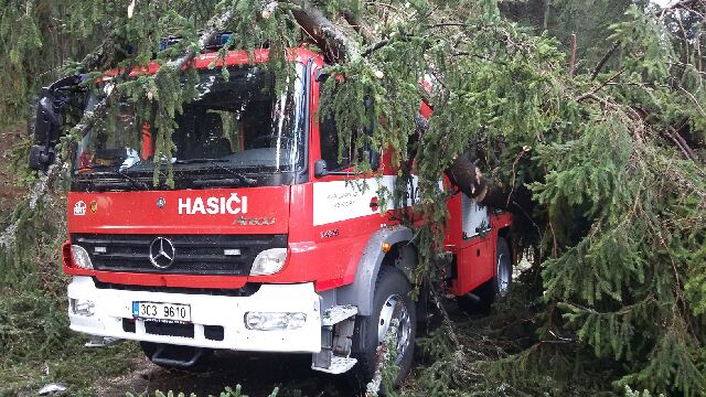 AKTUALIZACE 1Výjezdy hasičů v Jihočeském kraji k následkům silné vichřice se blíží ke čtyřem stovkám, spadlý strom zničil i cisternu