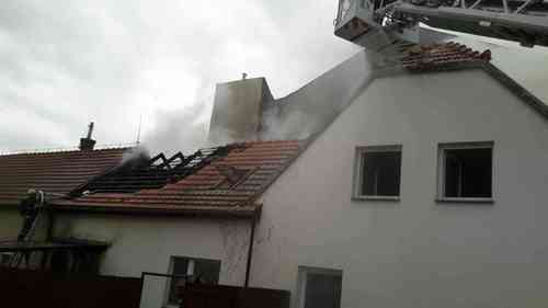 Na Masarykově náměstí ve Šlapanicích zničily v sobotu 28.října 2017 plameny část rodinného domu. Majitele si převzala do péče záchranná služba. Škoda se odhaduje do milionu korun. Operační středisko na žádost velitele zásahu vyslalo jednotky i z druhého stupně požárního poplachu. Na místě pracovali hasiči z 11 dobrovolných a profesionálních jednotek včetně územního řídícího důstojníka HZS JmK. Po výbuchu benzínových par poblíž kamen se požár rozšířil z přízemí až do půdního prostoru a zasáhl střešní konstrukci. Jednotkám se podařilo zabránit rozšíření požáru do obytné části domu a na sousední zástavbu. Proti plamenům nasadily 4 vodní proudy. Používaly při tom také automobilový žebřík. Majitel domu skončil pro podezření na nadýchání kouře v péči ZZS. Po ošetření jej posádka odvezla do nemocnice. Hasičům se podařilo dostat požár pod kontrolu v 17.41 a následovalo rozebírání střešní konstrukce a dohašování. Úplnou likvidaci požáru ohlásil velitel krátce před 19. hodinou. Vyšetřovatel předběžně odhadl, že škoda způsobená požárem zřejmě nepřekročí milion korun. Vzhledem k charakteru okolní zástavby však jednotky svým zásahem uchránily hodnoty za min. 20 milionů korun. Vzhledem k očekávanému dešti a poryvům větru zajistili hasiči po ukončení hasebních prací odkrytou střechu plachtou. Tuto činnost ukončili před 20. hodinou. Zdroj: Jaroslav Mikoška firebrno.cz Foto: HZS Jihomoravského kraje