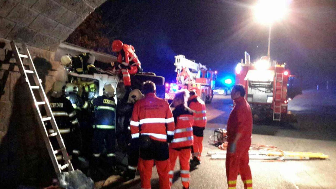 Během víkendu, 14.-15.10 2017, zasahovali hasiči Karlovarského kraje celkem u jedenácti dopravních nehod, v jednom případě museli i vyprošťovat.  Neobvyklou dopravní nehodu řešili hasiči od sobotního poledne v obci Andělská Hora na Karlovarsku. Nákladní auto převážející uhlí zde spadlo do požární nádrže. Z vozidla se do vody vysypal náklad a také začaly unikat provozní kapaliny. Pro vyproštění samotného auta musel majitel zavolat jeřáb, hasiči řešili především uniklé látky do vody. Zvažovali nasazení i takzvaného olejového separátoru, který dokáže sbírat uniklé látky z vodní hladiny. Protože se jednalo o uzavřenou nádrž, odkud kontaminovaná voda nikam neodtéká, zvolili hasiči po dohodě se majitelem vodní nádrže jiný postup. Hladinu nádrže zasypali hasiči sorbentem, který do sebe umí nasáknout uniklé látky, následně bude odčerpána veškerá voda z nádrže a provedeno vyčištění. Kromě této nehody zasahovali hasiči během víkendu u dalších deseti dopravních nehod. Nejvážnější se stala mezi Chebem a Hazlovem, kde po srážce dvou osobních aut museli hasiči jednu zraněnou osobu vyprostit s použitím vyprošťovacích nástrojů. Na místo byl povolán vrtulník, kvůli závadě ale nepřiletěl a dvě zraněné osoby tak odvezla sanitka, z toho jednu do Německa. Silnice byla po dobu vyprošťování zcela uzavřena. Zranění si vyžádala také nehoda motorkáře u Rudolce na Sokolovsku, a nehoda cyklisty v Mariánských Lázních, kterého transportoval do nemocnice vrtulník. U ostatních nehod hasiči především likvidovali uniklé provozní kapaliny na silnici. Takto zasahovali v Chebu, Karlových Varech, Mariánských Lázních, Aši či v Sokolově. Zdroj: Martin Kasal, tiskový mluvčí – HZS Karlovarský kraj Foto: HZS Karlovarský kraj