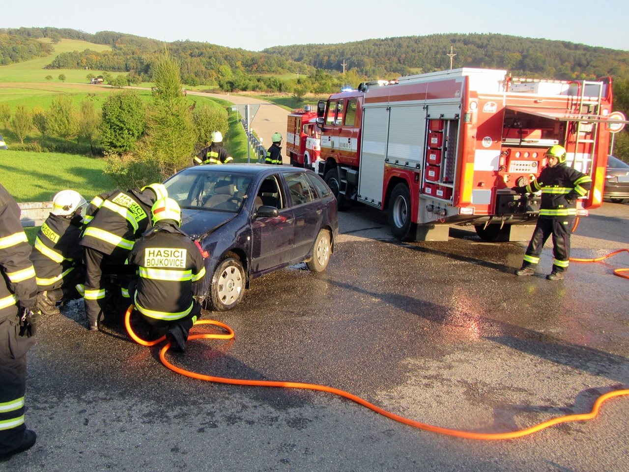 V sobotu 30. 9. 2017, krátce po půl jedenácté dopoledne byla na krajské operační středisko ohlášena dopravní nehoda osobního automobilu s kamionem mezi obcemi Horní Lhota a Zádveřice. Podle prvotních informací zde bylo podezření na zaklíněné osoby uvnitř osobního vozu. Na místo byla okamžitě vyslána jednotka profesionálních hasičů ze stanice Luhačovice a další jednotka ze stanice Zlín. K události vyrazil také velící důstojník směny. Ihned po příjezdu byla na operační středisko potvrzena havárie osobního a nákladního automobilu. Ve voze Volkswagen Passat došlo ke zranění jedné dospělé osoby a jednoho dítěte, ale oba se již nacházeli mimo vozidlo v péči zdravotníka, který jel náhodou kolem. Po příjezdu posádky zdravotnické záchranné služby byli předáni do jejich péče a odvezeni do nemocnice. Řidič nákladního vozu zraněn nebyl. Jednotka ze stanice Luhačovice byla odeslána zpět na základnu a hasiči ze Zlína zajistili místo nehody a provedli protipožární zabezpečení. Vozovka byla průjezdná kyvadlově. Po zadokumentování nehody policií byl osobní automobil naložen na odtahovou službu a komunikace byla uklizena od úlomků vozů a drobného úniku provozních kapalin. Následně bylo místo předáno a hasiči se po čtyřech hodinách zásahu vrátili zpět na základnu. Zdroj: kpt. Ing. Pavel Řezníček – HZS Zlínského kraje, Foto: HZS Zlínského kraje