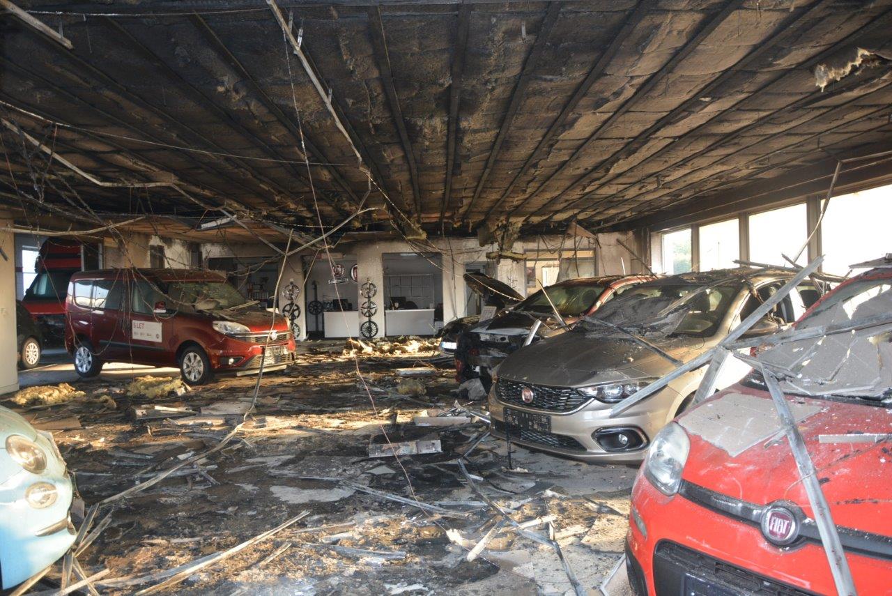 V noci na 28. září 2017 byl v 01.08 hodin na tísňovou linku HZS Středočeského kraje oznámen požár v autosalonu FIAT v Mladé Boleslavi na třídě Václava Klementa. Operační důstojník k události vyslal profesionální hasiče ze stanice Mladá Boleslav se dvěma cisternami a žebříkem, podnikovou jednotku ŠKODA AUTO a.s. s jednou cisternou a jednotky SDH Kosmonosy a Mladá Boleslav-Podlázky, každou s cisternovým automobilem. První jednotka (HZS Mladá Boleslav) byla na místě pět minut po ohlášení události. Průzkumem bylo zjištěno, že požárem je zasažena výstavní hala se šesti novými vozy. Hasiči v dýchací technice dostali plameny pod kontrolu vysokotlakým proudem a jedním C proudem v krátké chvíli, takže v 1:38 hodin mohl velitel zásahu ohlásit operačnímu středisku lokalizaci. Následně byl objekt pomocí přetlakové ventilace odvětrán. Na místě zůstala dobrovolná jednotka z Kosmonos, která zajistila dohlídku do ranních hodin. Kolem půl deváté byli dobrovolní hasiči odesláni velitelem čety HZS Mladá Boleslav na základnu. Požářiště bylo za přítomnosti vyšetřovatele požárů zkontrolováno termokamerou a předáno Polici ČR. Zároveň byla ohlášena likvidace požáru. Vyšetřování události bude pokračovat v průběhu svátečního dne za účasti expertů Technického ústavu požární ochrany Praha a kriminální policie. Předběžná škoda byla vyčíslena na deset milionů korun, uchráněné hodnoty částkou pět milionů. Zdroj: por. Ing. Ladislav Holomčík – tiskový mluvčí HZS Středočeského kraje Foto:HZS Středočeského kraje