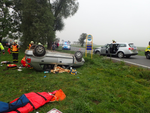 Dvě jednotky profesionálních hasičů (HZS MSK) zasahovaly ve středu 27.9.2017 dopoledne v Bolaticích (okres Opava) u vážné nehody dvou osobních automobilů - Škoda Felicia a Volkswagen Passat, která si vyžádala zranění tří osob. Zasahující hasiči dali dvěma dětem předškolního věku z jednoho havarovaného auta dva plyšové dráčky Hasíky, aby je uklidnili. Operační středisko hasičů bylo o nehodě informováno ve středu krátce po půl jedenácté dopolední. Do Bolatic vyjely dvě jednotky Hasičského záchranného sboru Moravskoslezského kraje (HZS MSK) – ze stanic v Hlučíně a Opavě. Felicie ležela mimo silnici na střeše, Passat zůstal na silnici. Všichni cestující byli při příjezdu hasičů mimo havarovaná vozidla. Hasiči asistovali ZZS MSK při ošetřování zraněných a havarovaná auta zabezpečili před případným požárem. Na menší únik provozních kapalin na silnici použili nasákavý sorbent, který později uklidili. Všechna zásahová vozidla HZS MSK vozí již několik let plyšové hračky zelených dráčků Hasíků s červenou přilbou právě kvůli dětem, které jsou účastníky dopravních nehod, svědky požárů a dalších kritických událostí. Hasík v rukou dítěte jej obvykle velmi uklidní a dítě se přestane bát. Zdroj: Petr Kůdela, tiskový mluvčí - HZS Moravskoslezského kraje Foto: HZS Moravskoslezského kraje