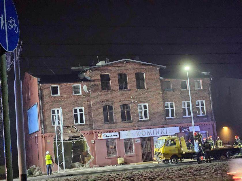 Incident se stal v úterý krátce před třetí hodinou ranní. Hasiči obdrželi hlášení o odtahovém voze, který narazil do obytného domu a krejčovské dílny v Szosa Chełmińska v Toruni.