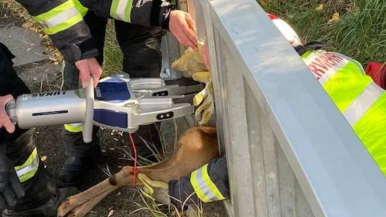 S pomocí rozmetadla bylo možné jelena opatrně vyprostit. Poté byl okamžitě vyšetřen, zda není zraněn. Dobrou zprávou bylo, že nebezpečnou cestu přežil bez úhony a mohl být vypuštěn v nedaleké zalesněné oblasti, mimo dálnici.