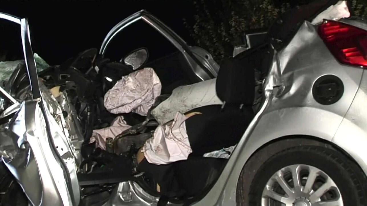 Při čelní srážce, velmi násilné, byla zapojena dvě auta: v jednom cestovalo mladý pár snoubenců, ve druhém mladík. Silnice byla uzavřena.
