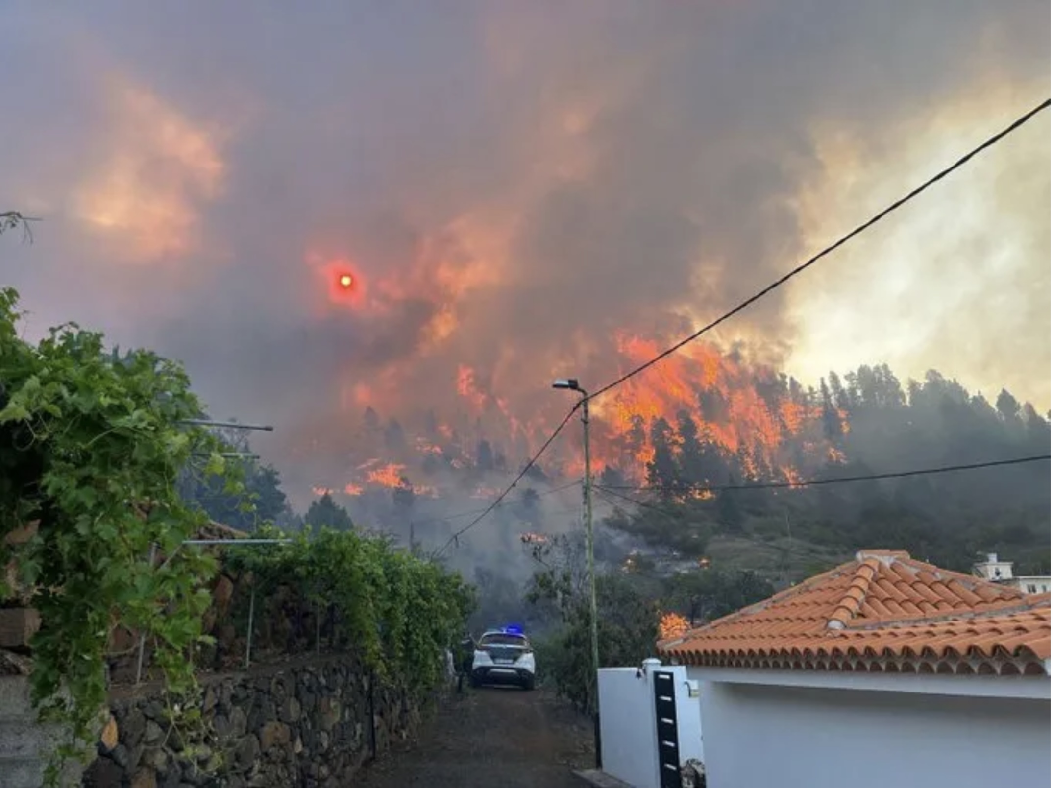 Vláda oznámila, že požár postihuje obec Puntagorda, která zahrnuje plodiny, křoviny a borovice, a šíří se na obytné domy a vozidla, a proto byla evakuována.