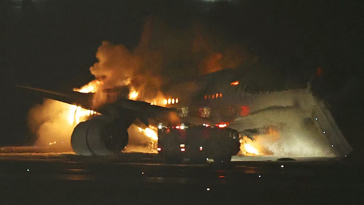 Letadlo společnosti Japan Airlines bylo v úterý večer v plamenech, když přistálo na ranveji tokijského letiště Haneda.