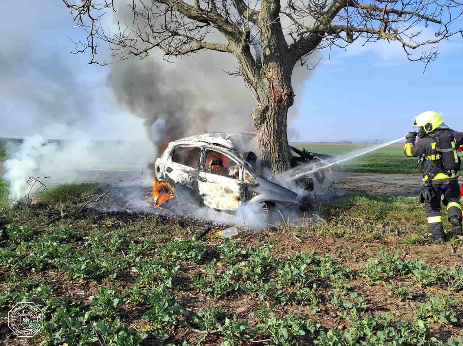 Náraz do stromu skončil tragédií a požárem