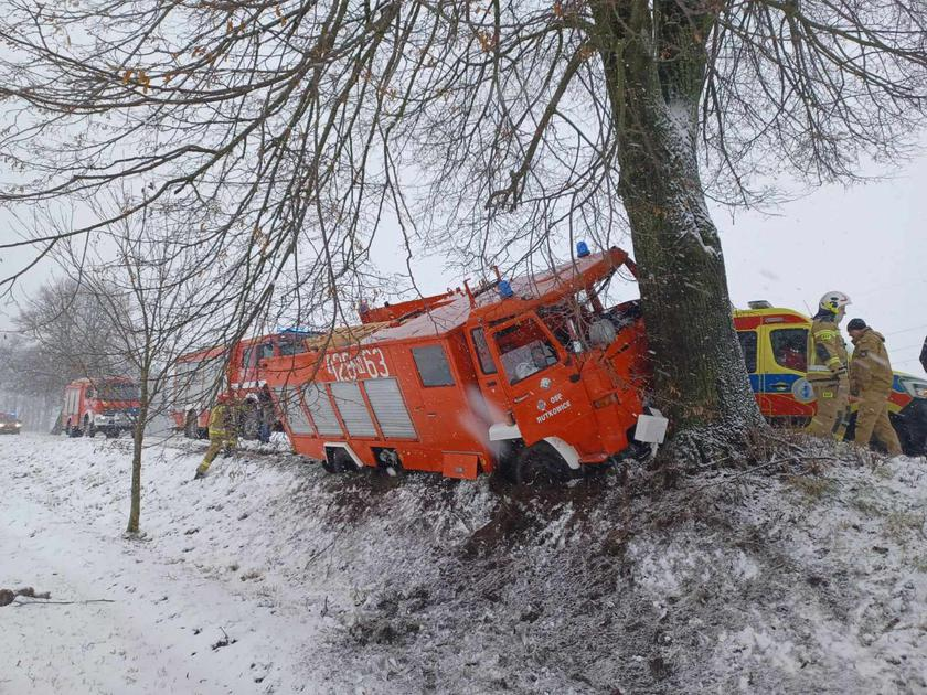 Hasičské auto narazilo do stromuKW PSP v Olsztyně