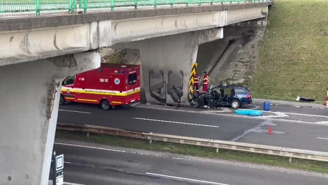 Ve směru od Svätý Jur řidič škodovky narazil do jednoho ze sloupů nadjezdu v Rybničné ulici. Řidič utrpěl zranění, která ho neohrožovala na životě. V plné rychlosti narazil do betonového pilíře nadjezdu. Jedním ze svědků, kteří šli kolem krátce po nárazu, byl náš kolega. "Těsně předtím jsem viděl, jak auto muselo havarovat, protože u něj začala zastavovat první auta a snažila se mu pomoci," řekl svědek nehody Martin Mitošinka.