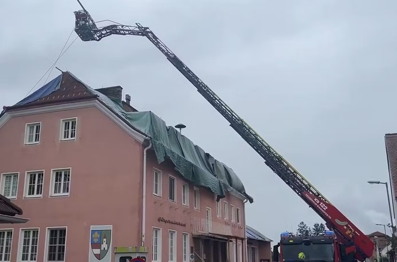 Jedenáct dobrovolníků bylo v neděli ve službě, aby znovu dočasně utěsnili střechy pomocí otočného žebříku, uvedla ORF.